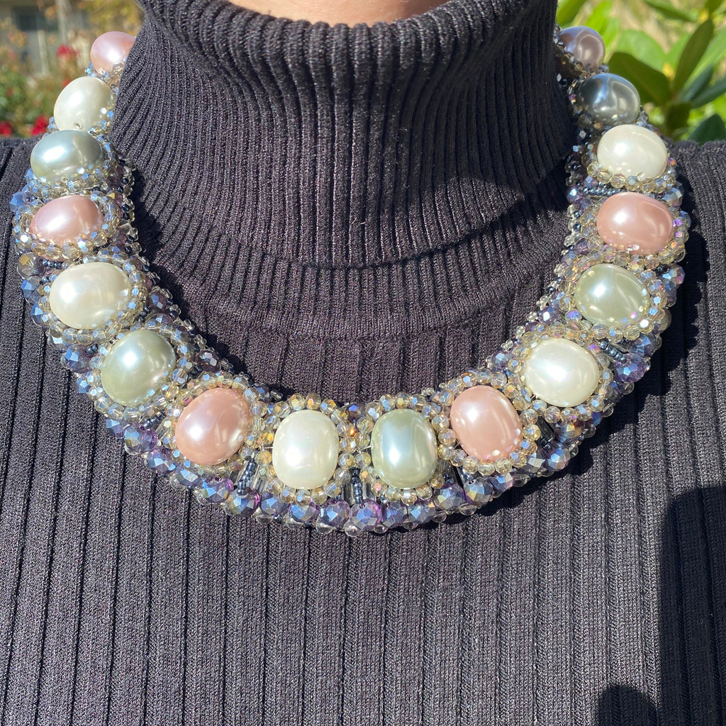 Handmade Choker 18" Pink & White Freshwater Pearls Statement Necklace
