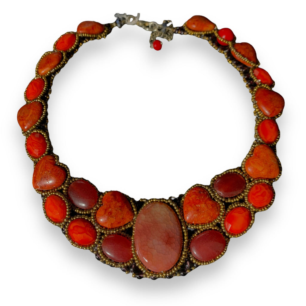 Handmade Choker 20" Unique Coral and Agate Statement Bib Necklace