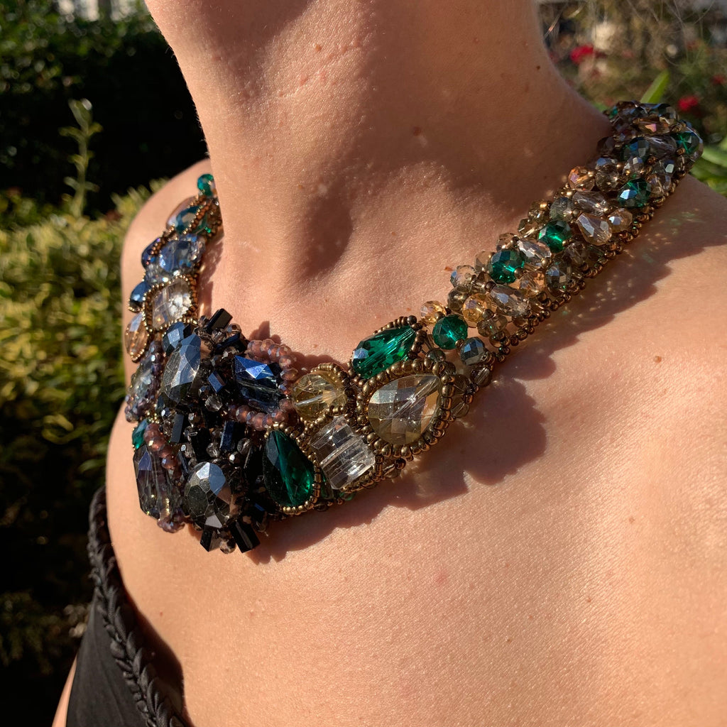 Handmade Choker Smoky Colors 20" Stunning Dark Bib Necklace