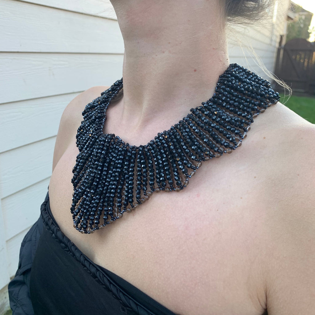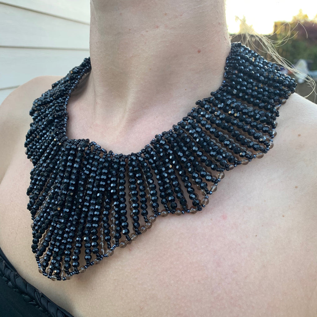 Handmade Collar Necklace 20" Black Bead Stole Collar Choker Jewelry