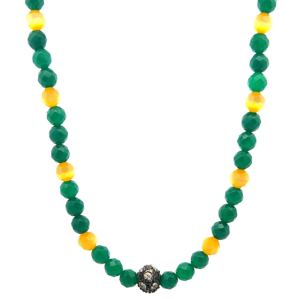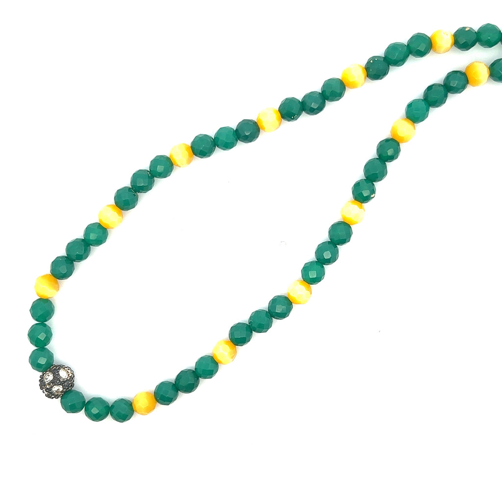 Handmade Green Yellow Glass Facet 6mm Ball Necklace