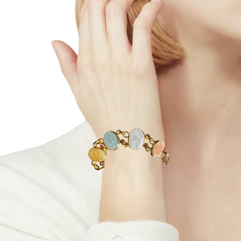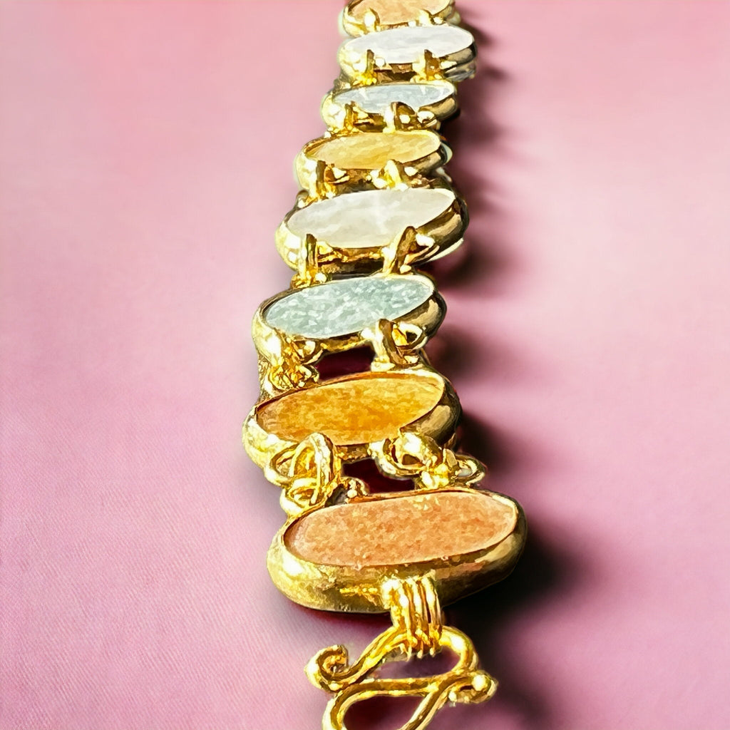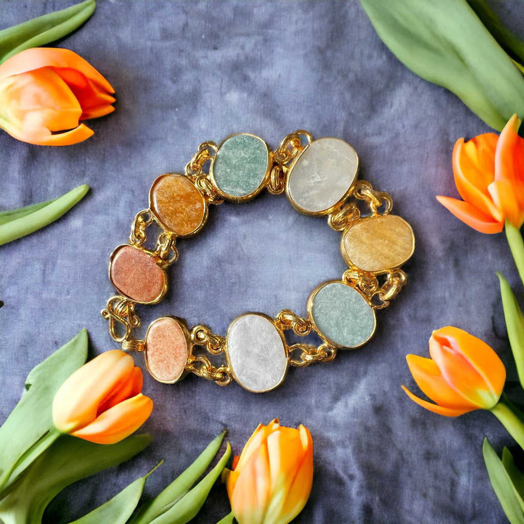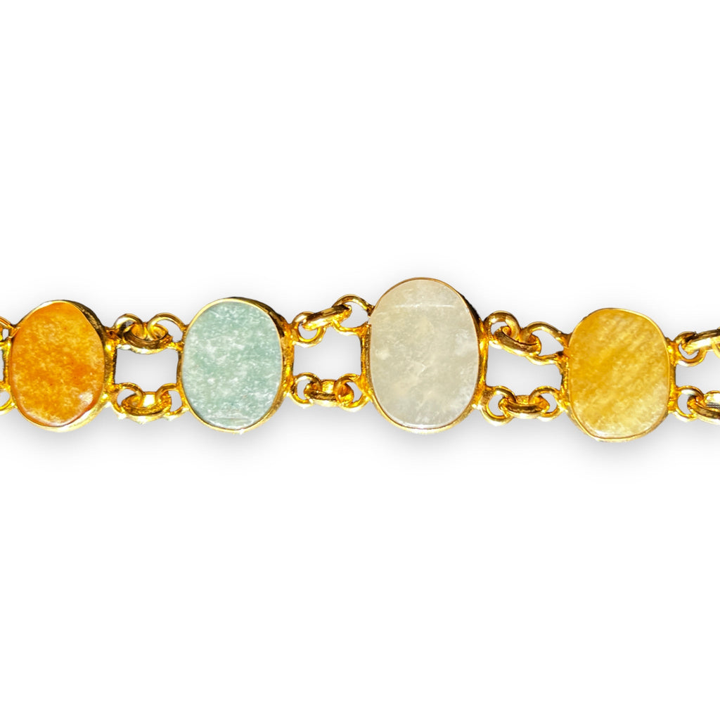 Handmade Natural Gemstone Oval Linked Bracelet 7 Inch Artisan Design Wristband