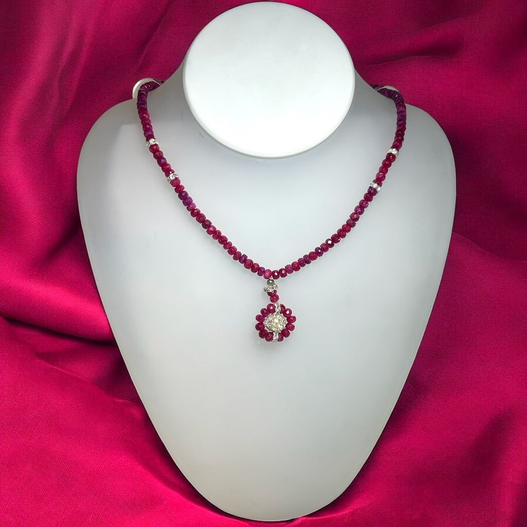 Handmade Natural Ruby Rondelle Facet Cut Beads Precious Necklace