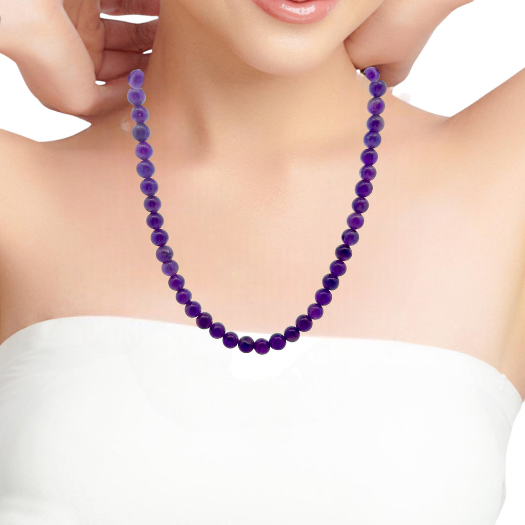 Handmade Necklace Natural Amethyst Gemstone Plain Ball Beaded Jewelry