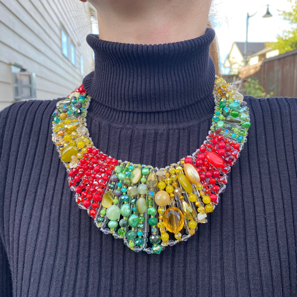 Handmade Pride Choker 20" Multicolors Beads Statement Bib Necklace