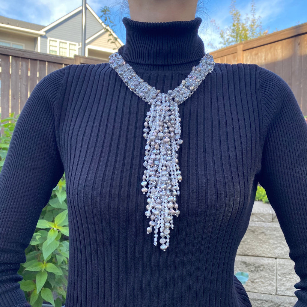 Handmade Stunning Tassels Necklace 20" Unique Freshwater Pearls Beads