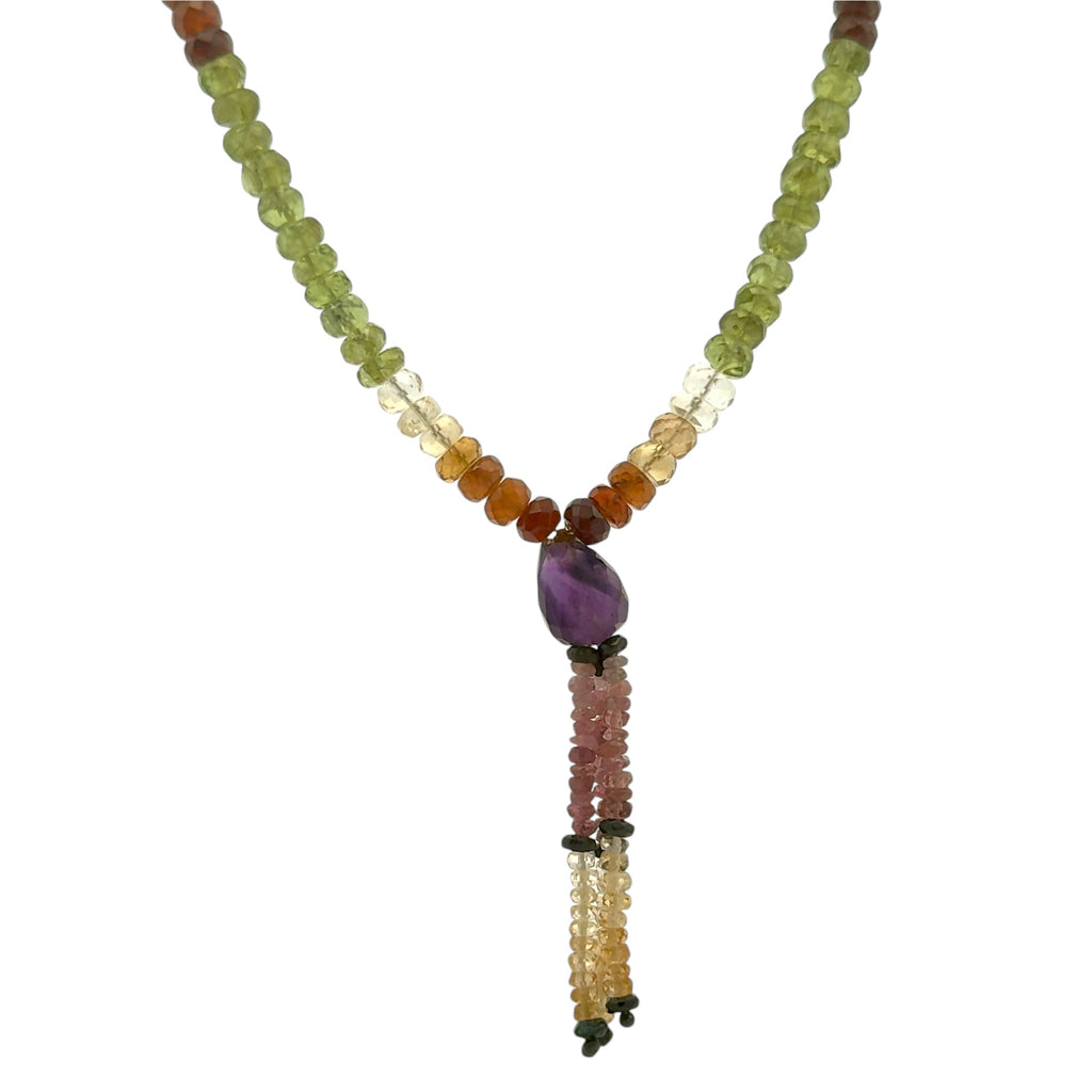Iolite Natural, Citrine, Peridot, Spessartite, Pink Tourmaline, and Amethyst Necklace