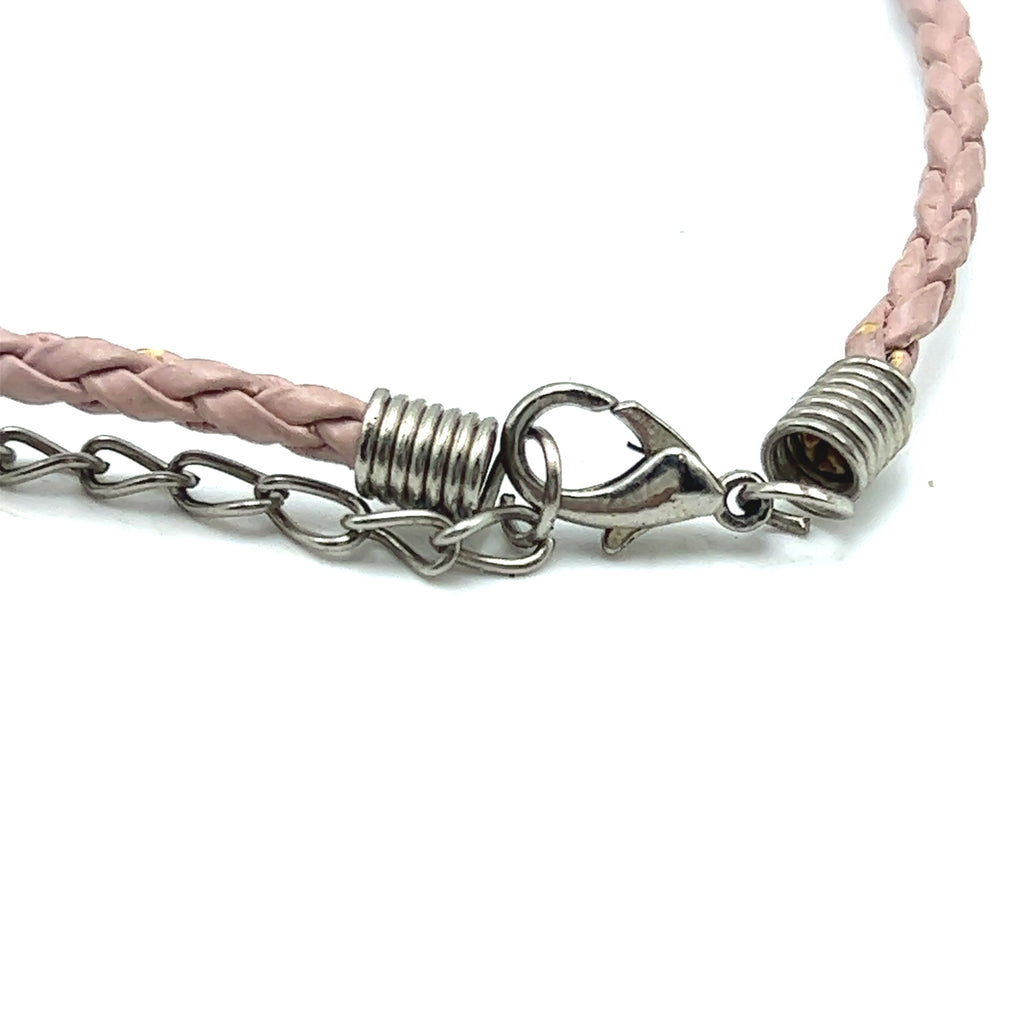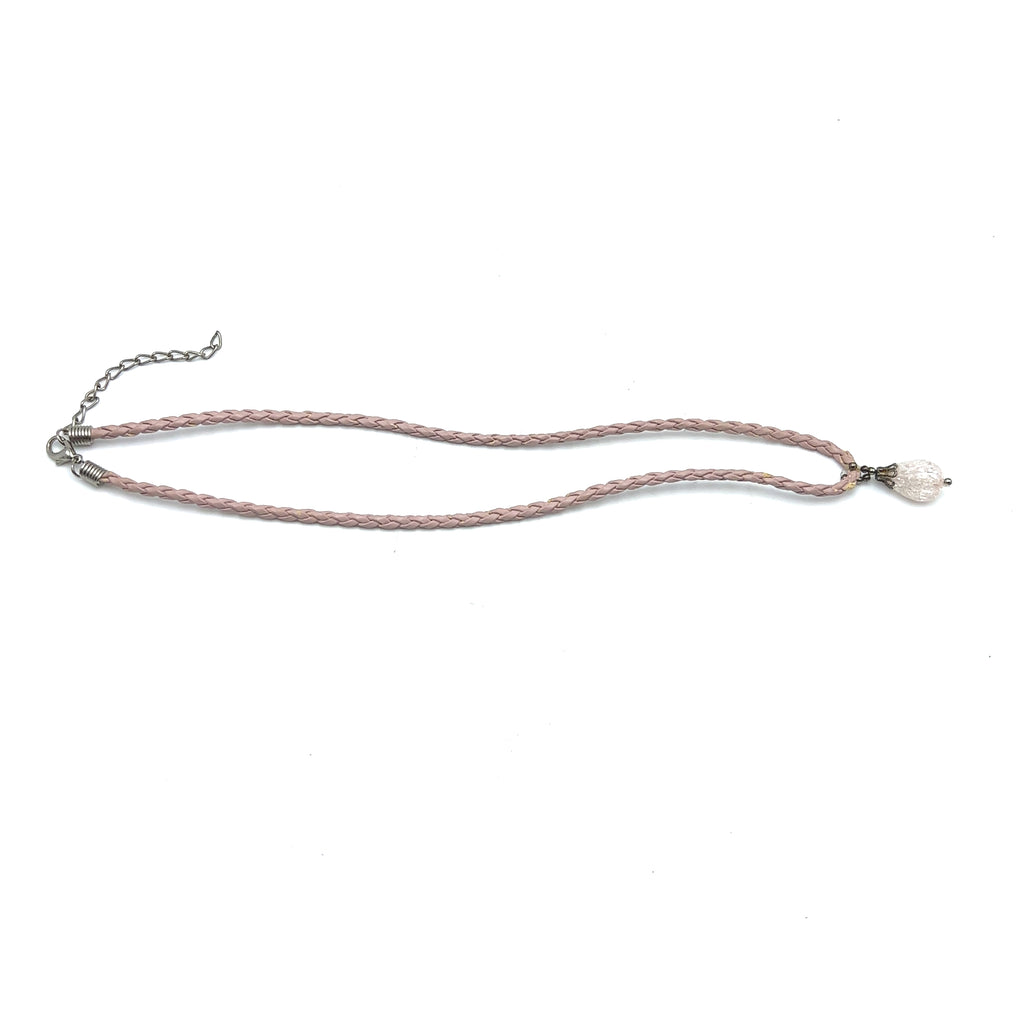 Celebrate soft elegance with this light pink braided leather cord necklace, beautifully paired with a smooth white drop stone. The gentle blush tone gives the piece a fresh and feminine charm, while the polished drop stone adds a simple yet eye-catching focal point.