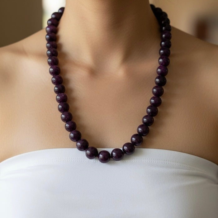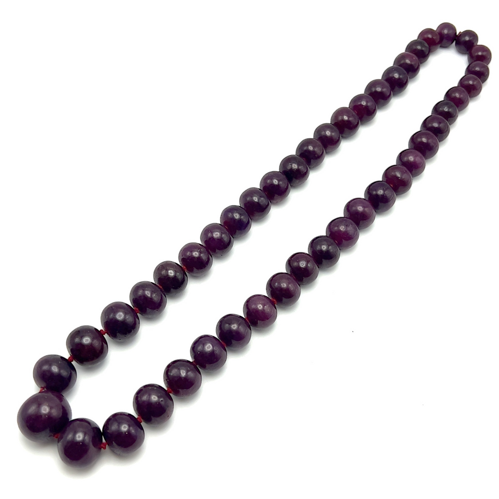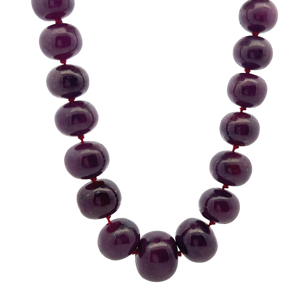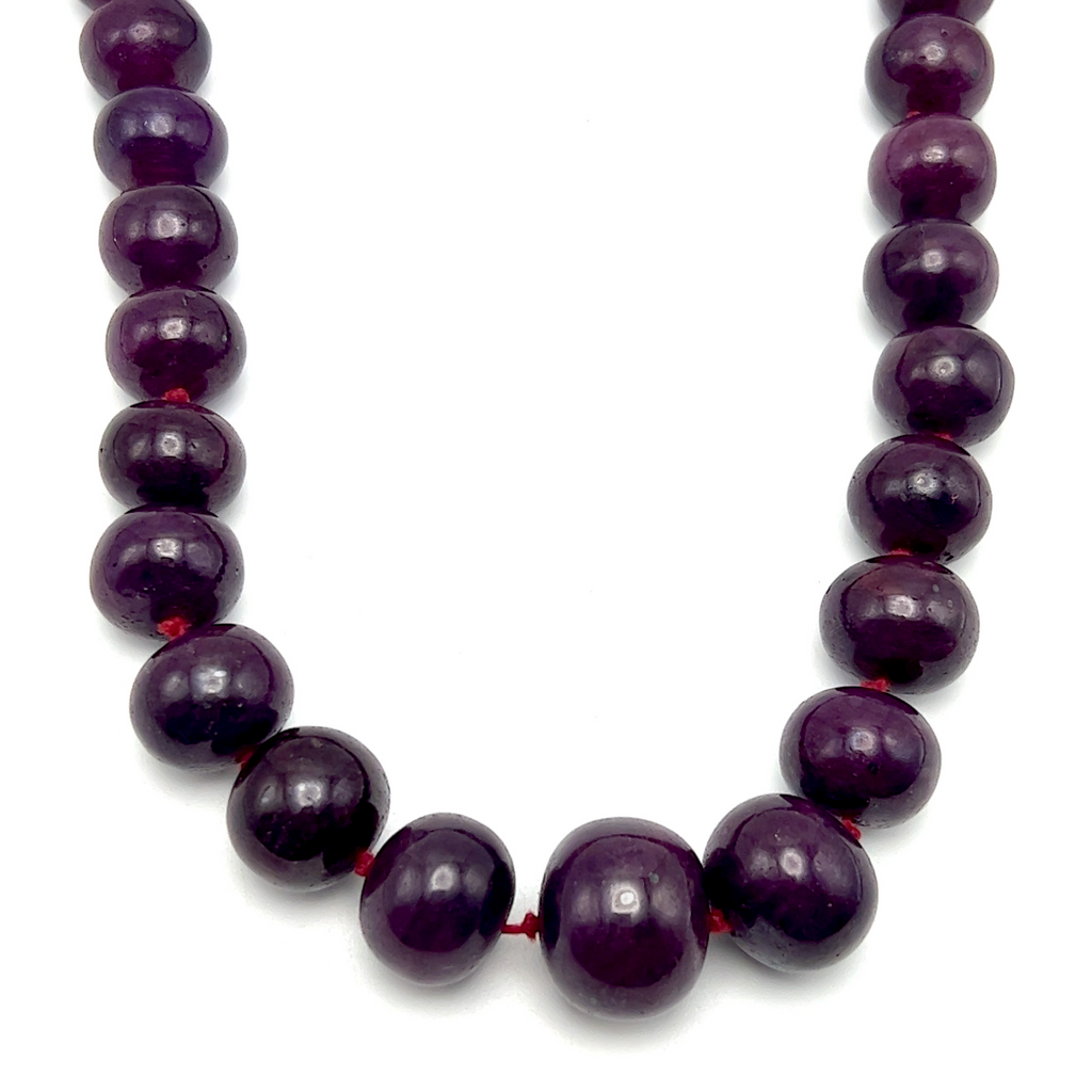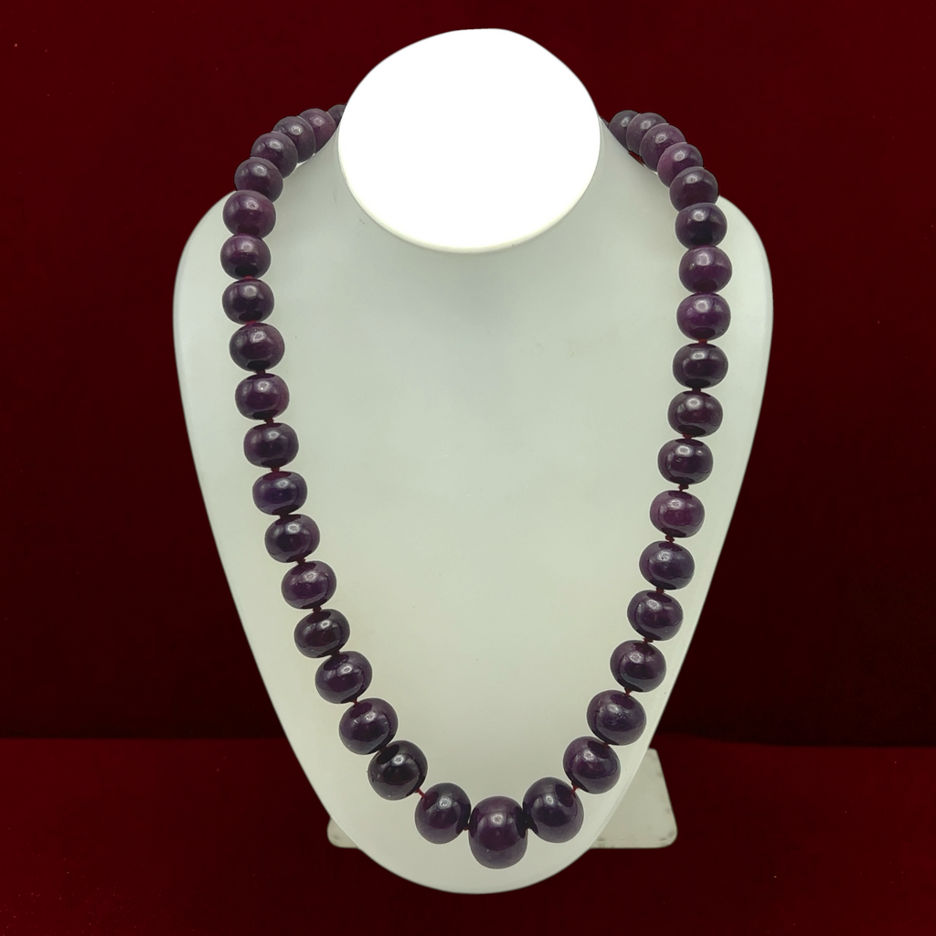 Celebrate timeless beauty and natural elegance with this Ruby gemstone beaded necklace. Crafted with genuine ruby stones, the necklace features smooth, polished beads in a rich crimson color that radiate warmth, passion, and sophistication. The classic design highlights the natural depth and luster of ruby, making it a versatile piece suitable for both everyday wear and special occasions. Known as the July birthstone, ruby is traditionally associated with love, confidence, and vitality, adding meaningful symbolism to its refined appearance. This necklace is perfect for wearing alone as a statement or layering with other gemstone jewelry for an elegant, personalized look.