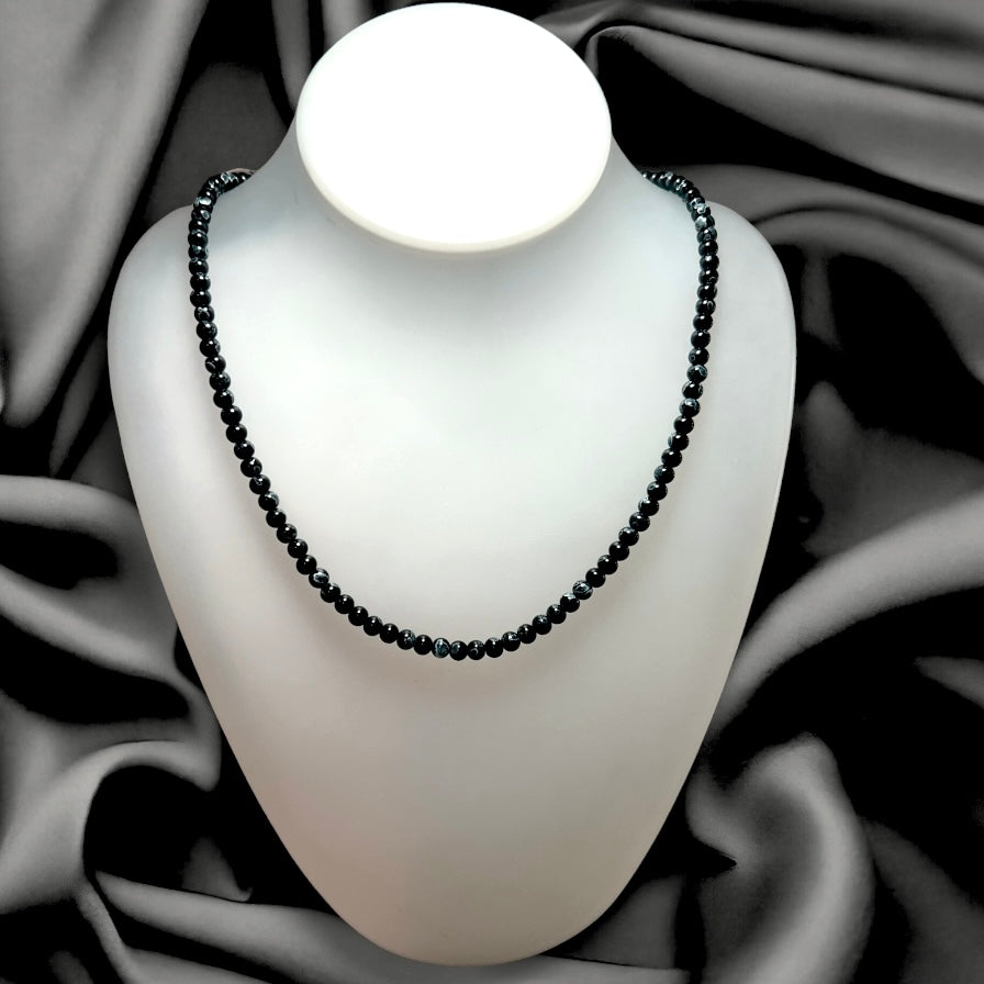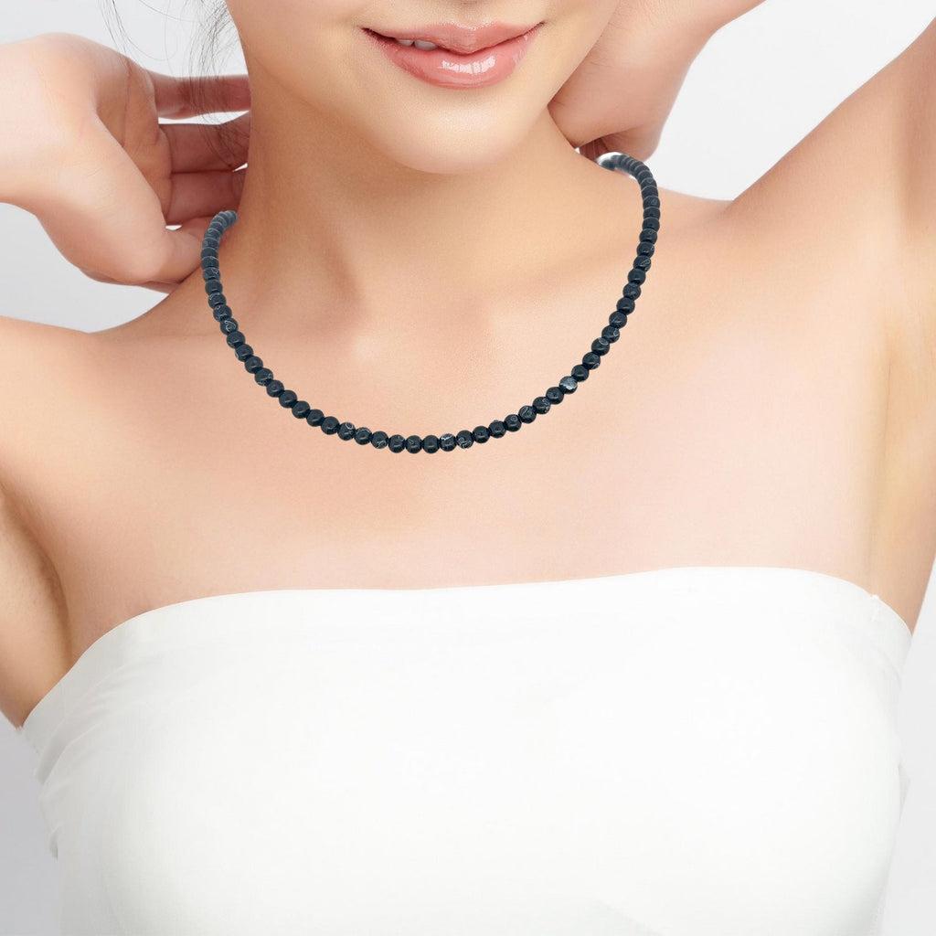Natural Black Obsidian Plain Ball Volcanic Gemstone Necklace