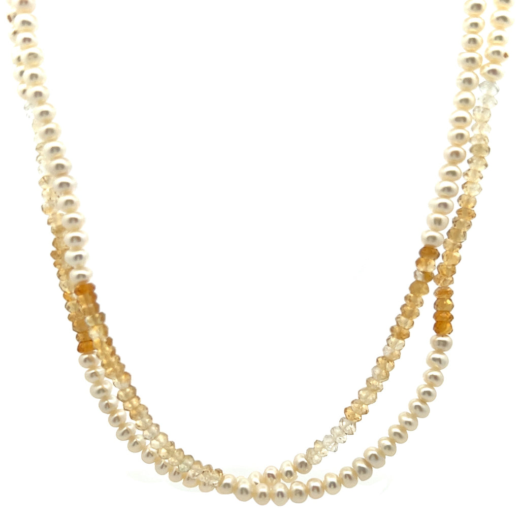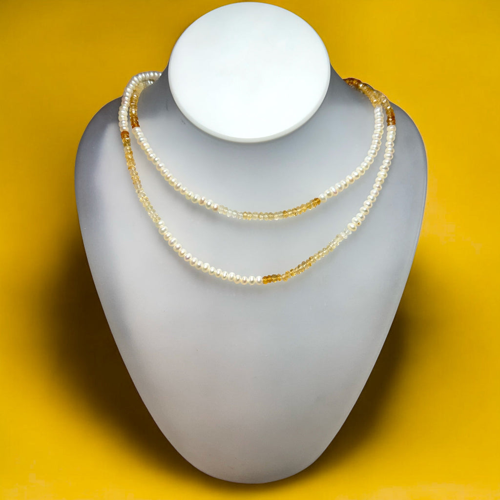 Natural Citrine & Pearl Elegant Gemstone Handmade Necklace