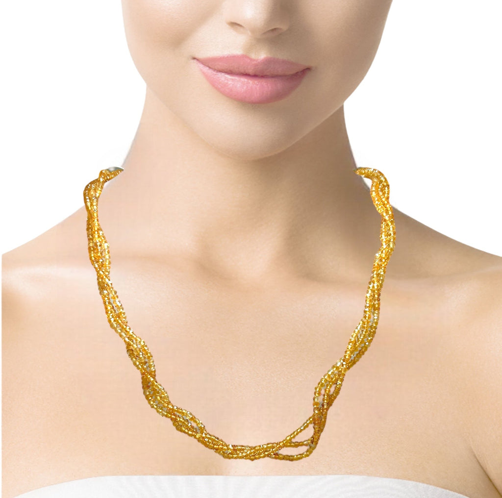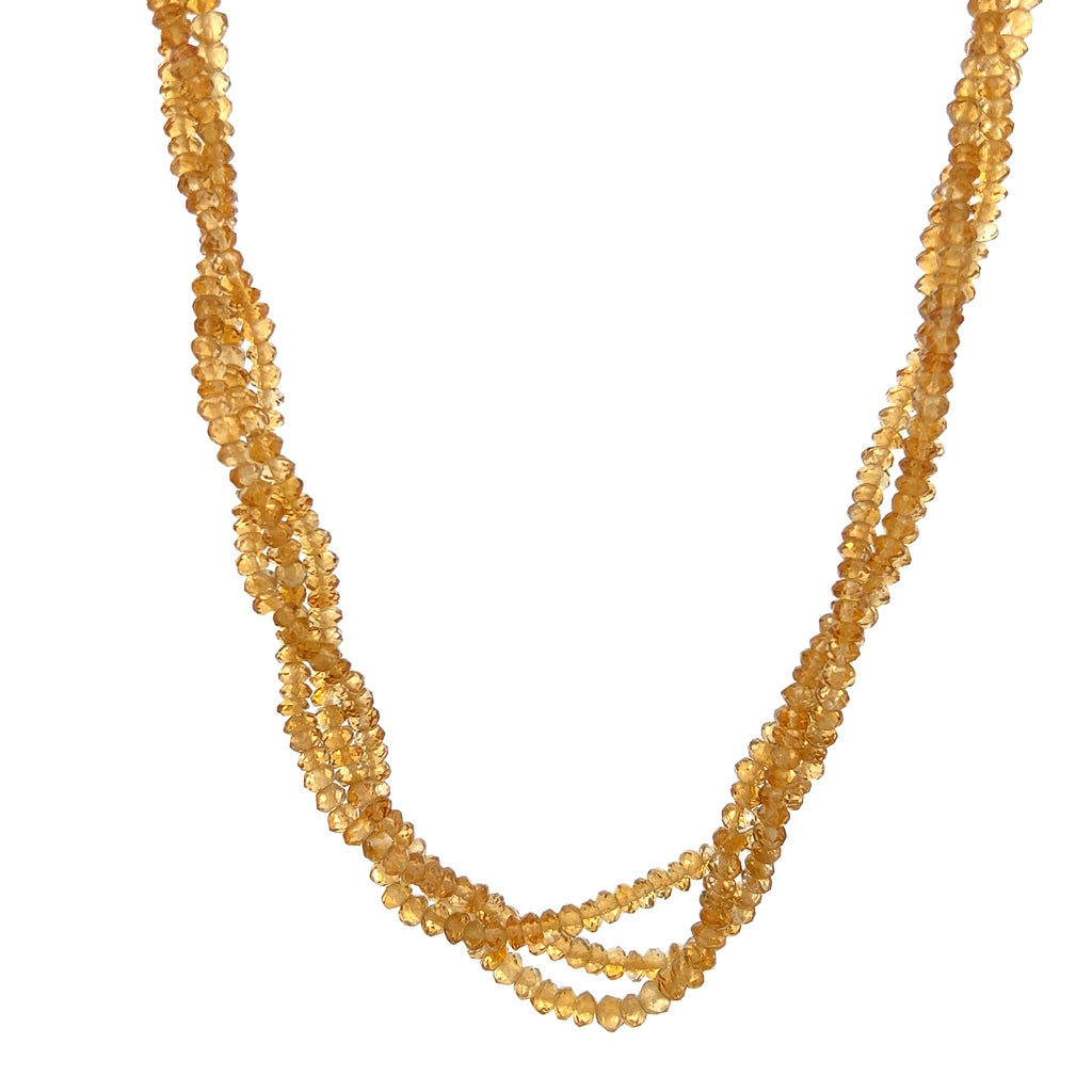 Natural Citrine Rondelle Facet Cut Beads Gemstone Twisted Necklace