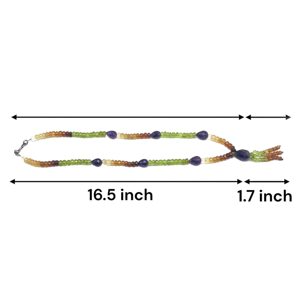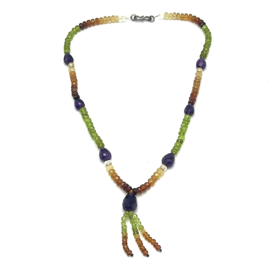 Natural  Citrine, Spessartite Garnet, Peridot and Amethyst Necklace
