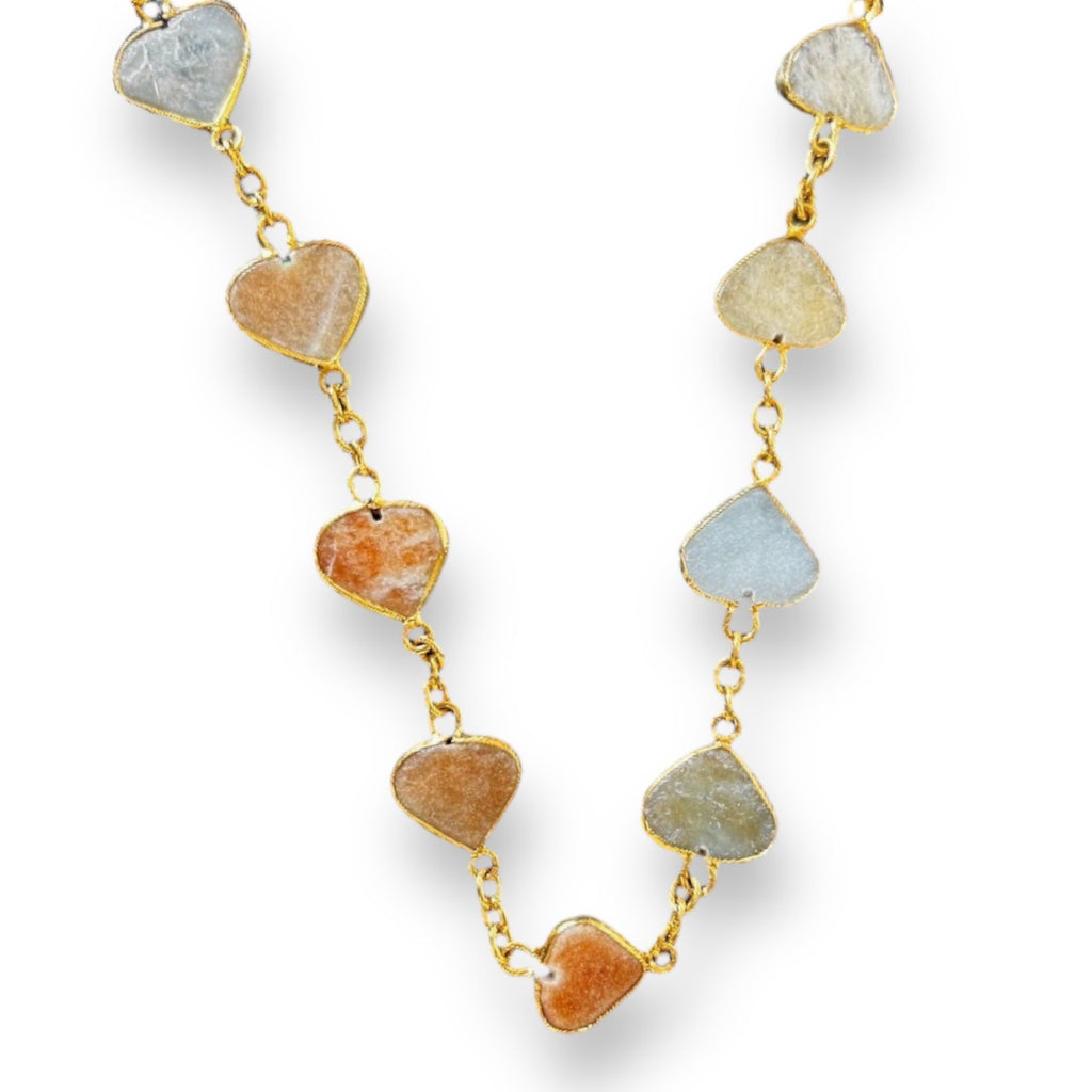 Natural Handmade Gemstone Station Necklace Semiprecious Flat Heart Cut Chain Jewelry