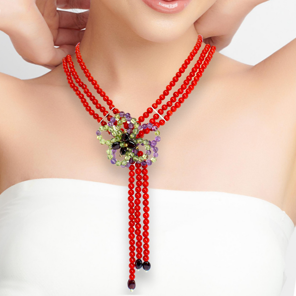 Natural Coral Amethyst Peridot Garnet Plain Ball Semi Necklace