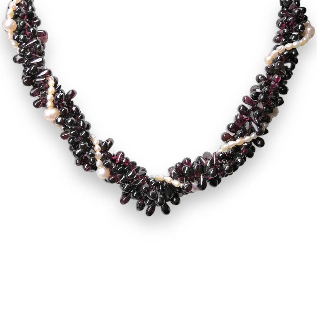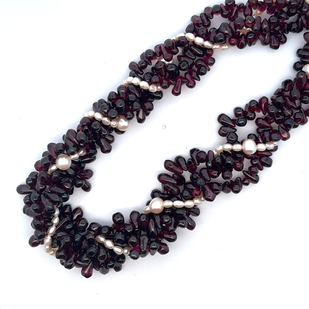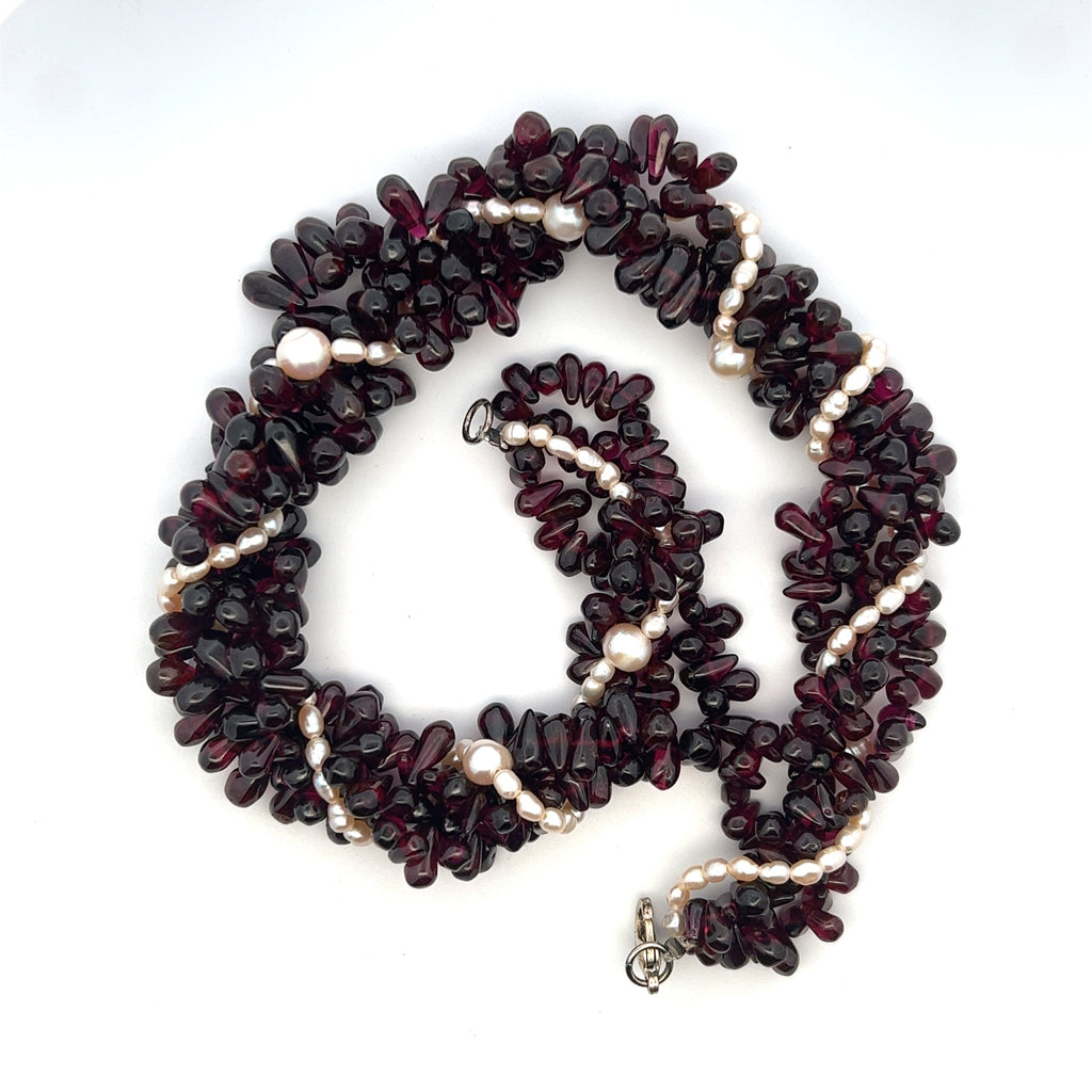 Natural Garnet Drop with Pearl June Gemstone Necklace