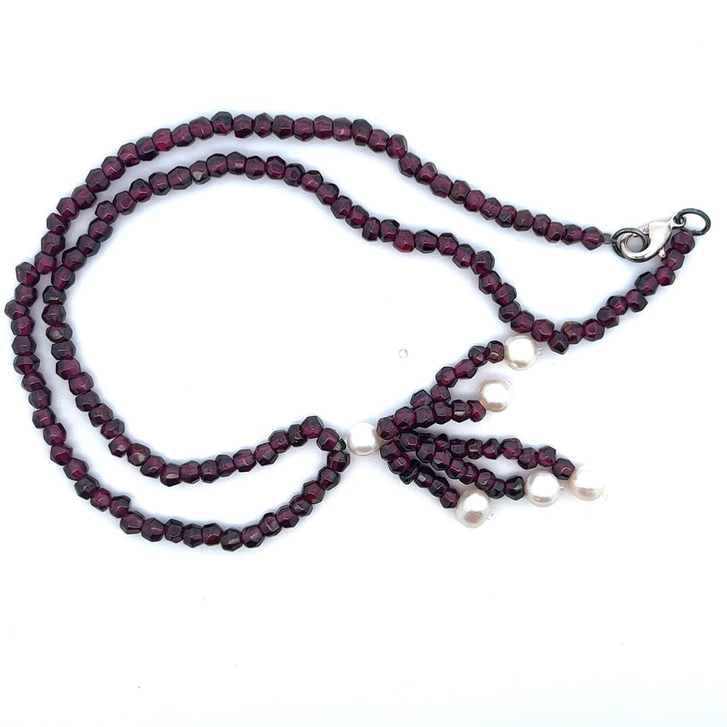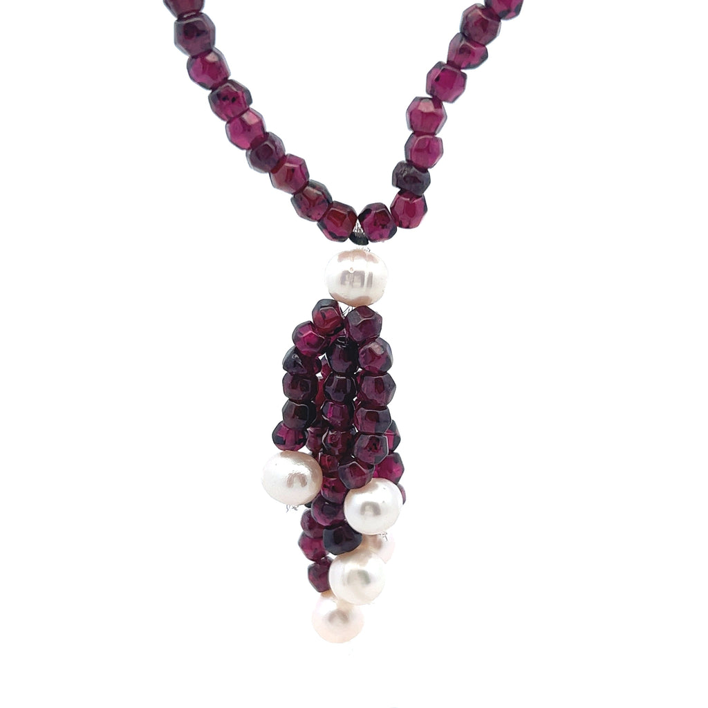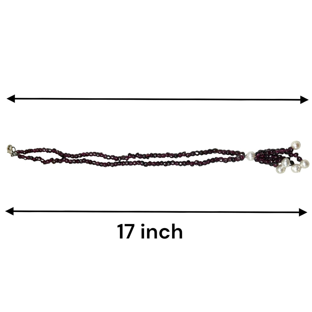 Natural Garnet Rondelle Facet Cut with Smooth Pearl Gemstone Necklace