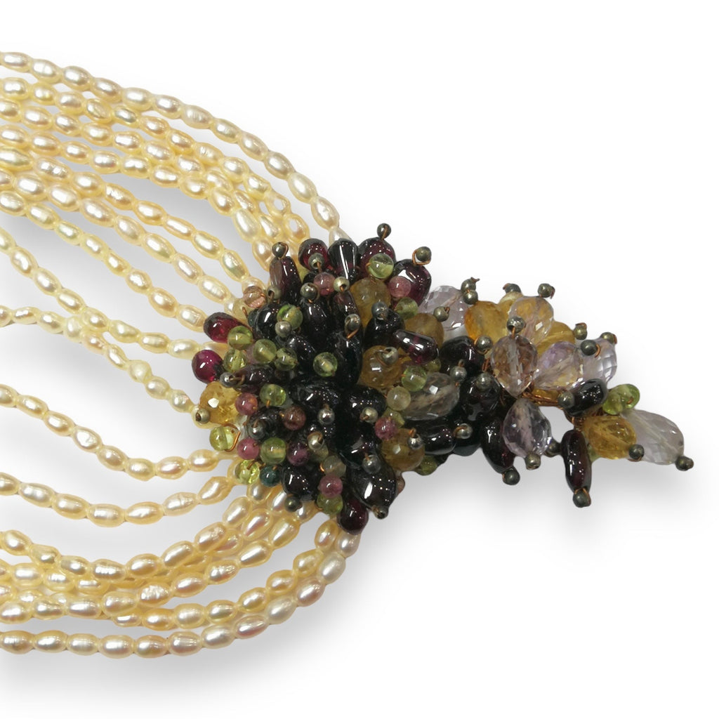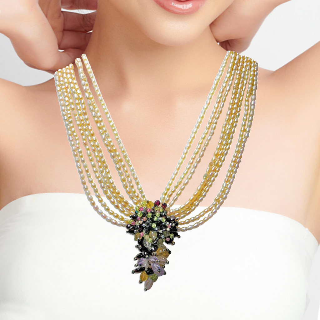 Natural  Peridot, Pearl, Citrine, Amethyst, Garnet Gemstone Necklace