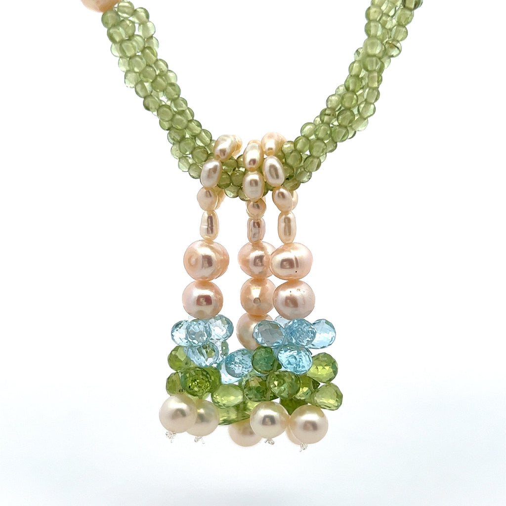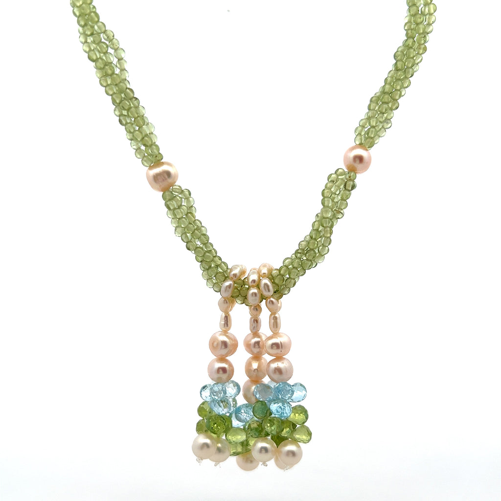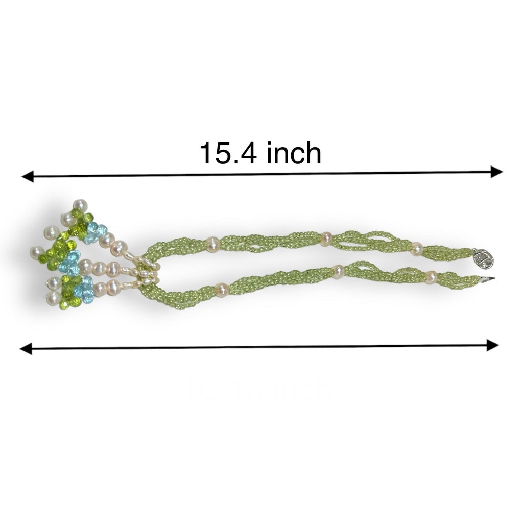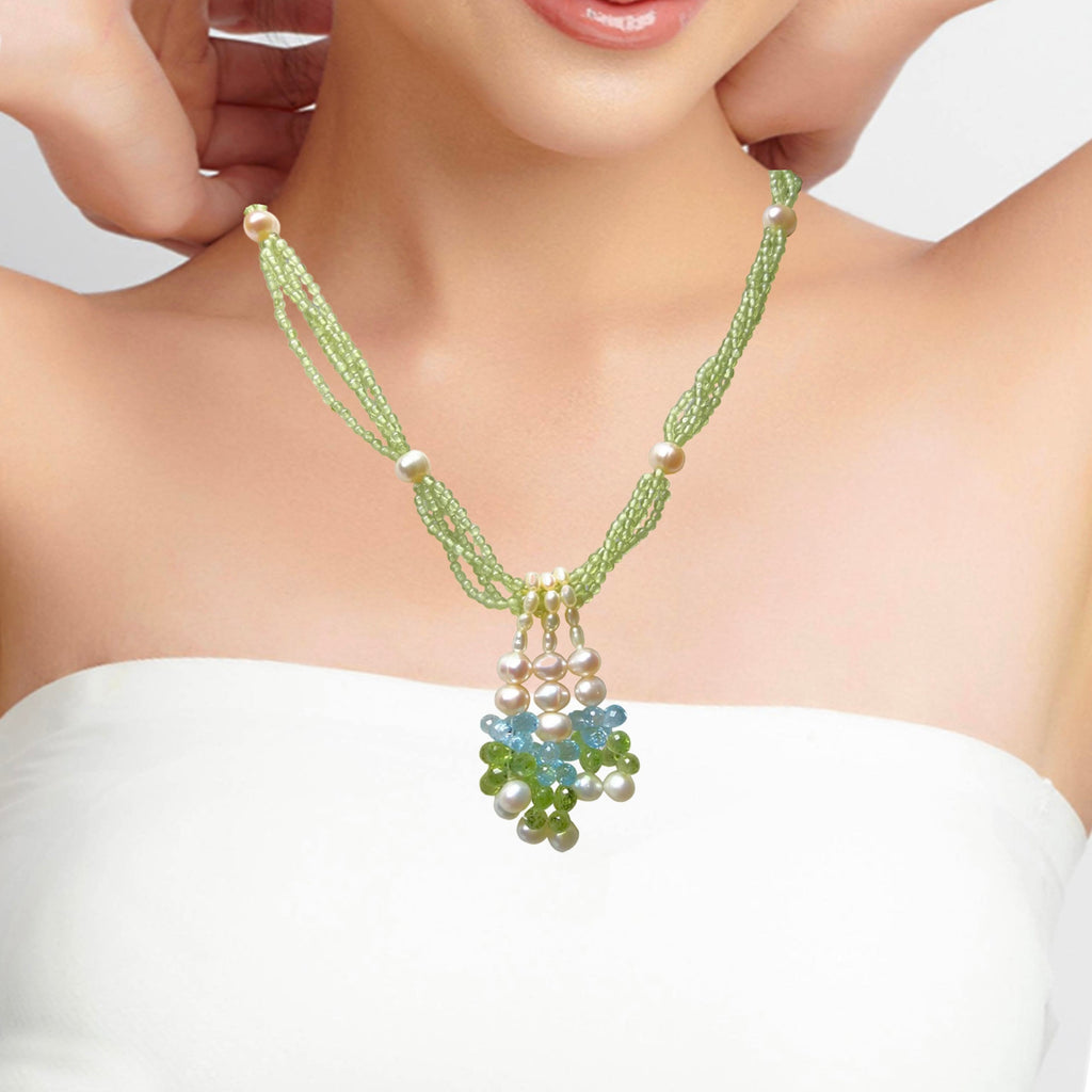 Natural Peridot Pearl Blue Topaz Birthstone Necklace Jewelry