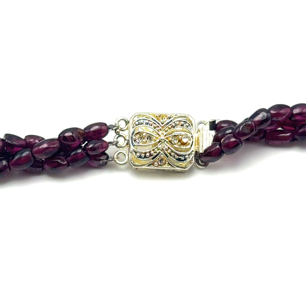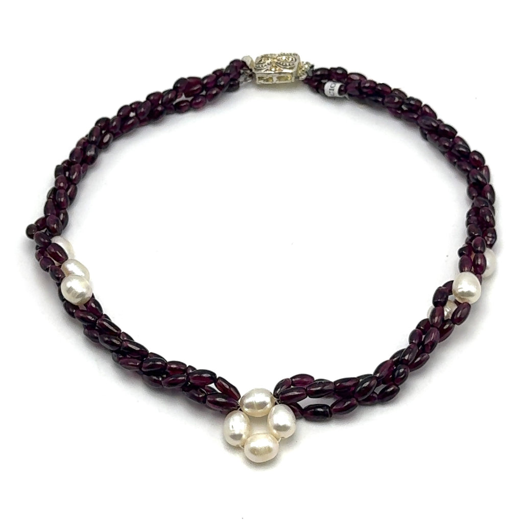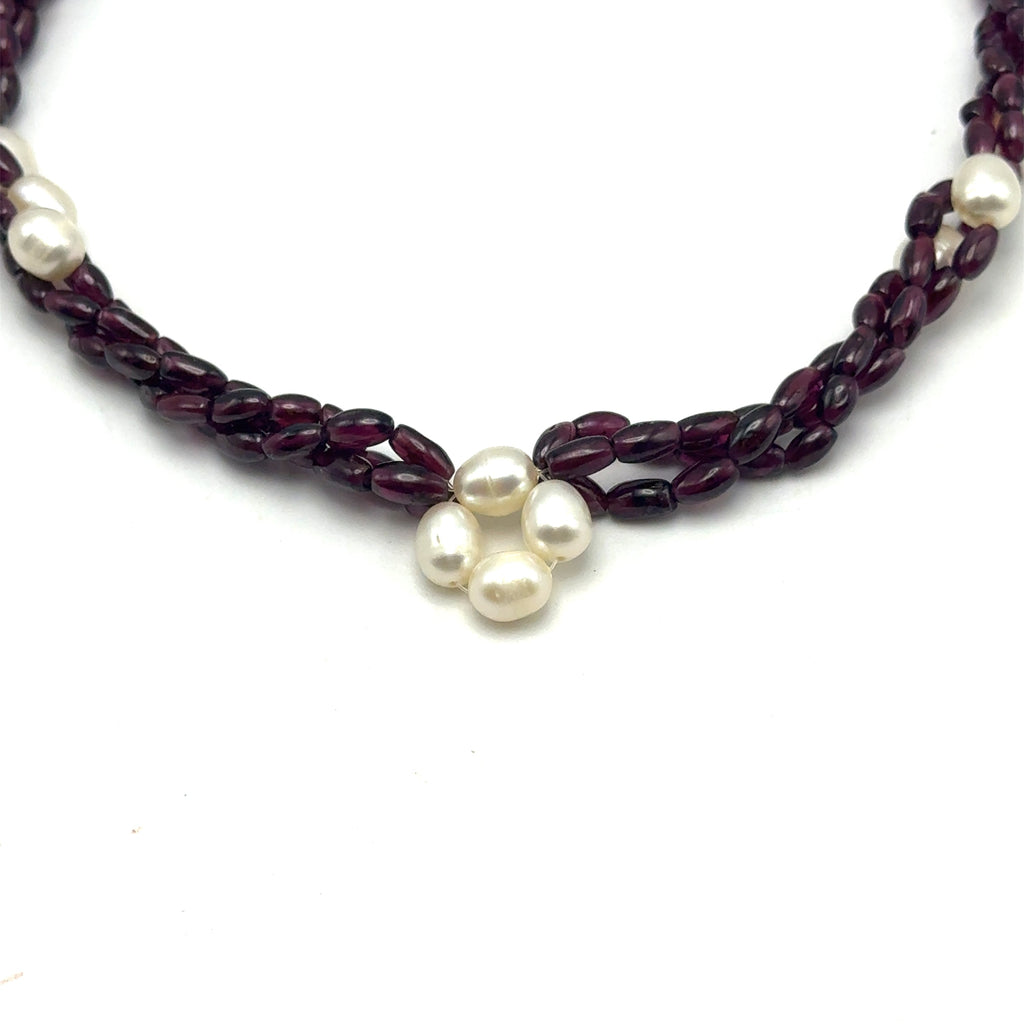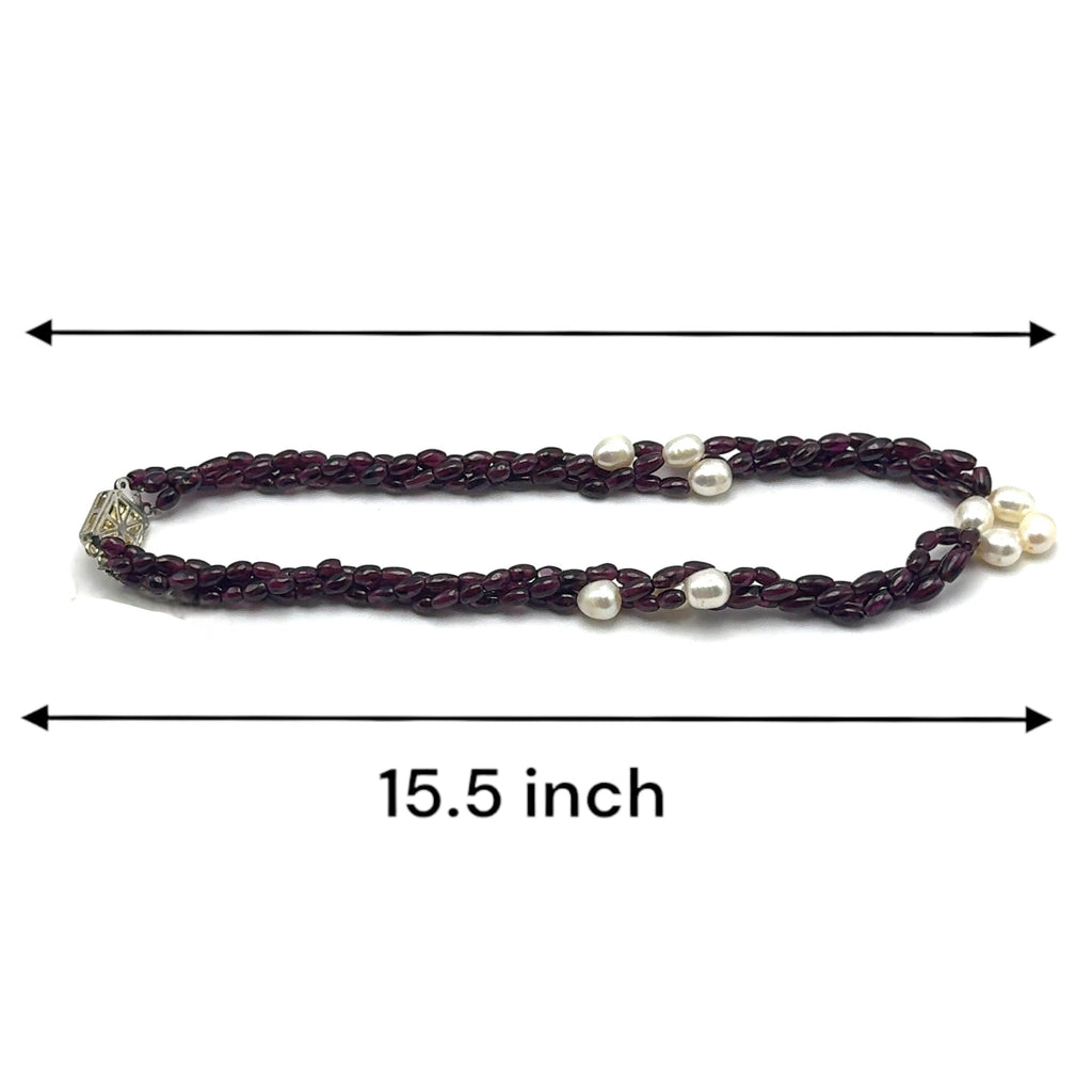 Natural Garnet Balloon & Plain Pearl Three Strand Gemstone Necklace