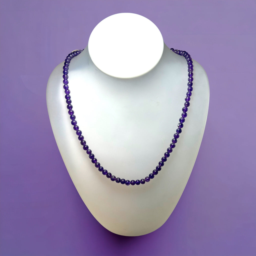 Natural Handmade Necklace Amethyst Gemstone Plain Ball Beaded Jewelry