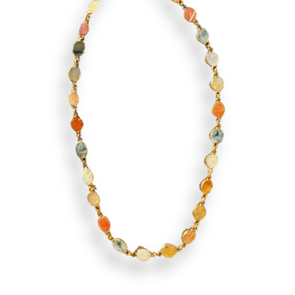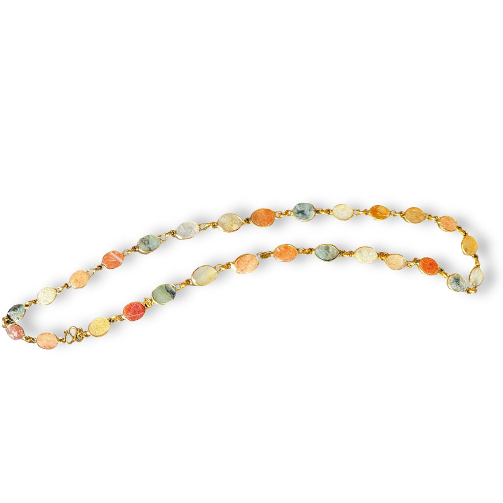 Natural Handmade 18" Station Necklace Semiprecious Gemstone Flat Oval Cut Chain Jewelry