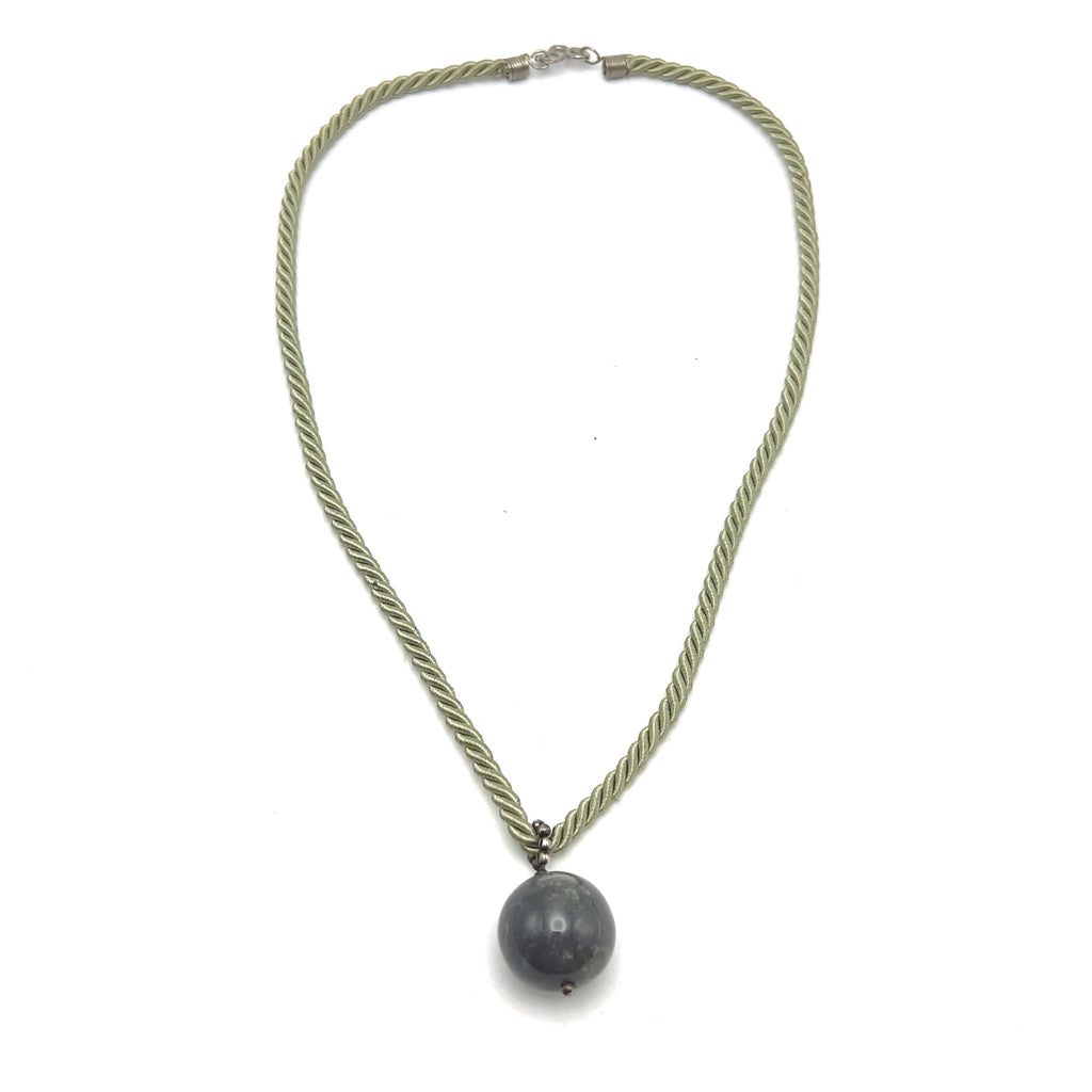 Natural Jasper Gemstone 20mm Ball Light Green Twisted Cord Pendant Necklace