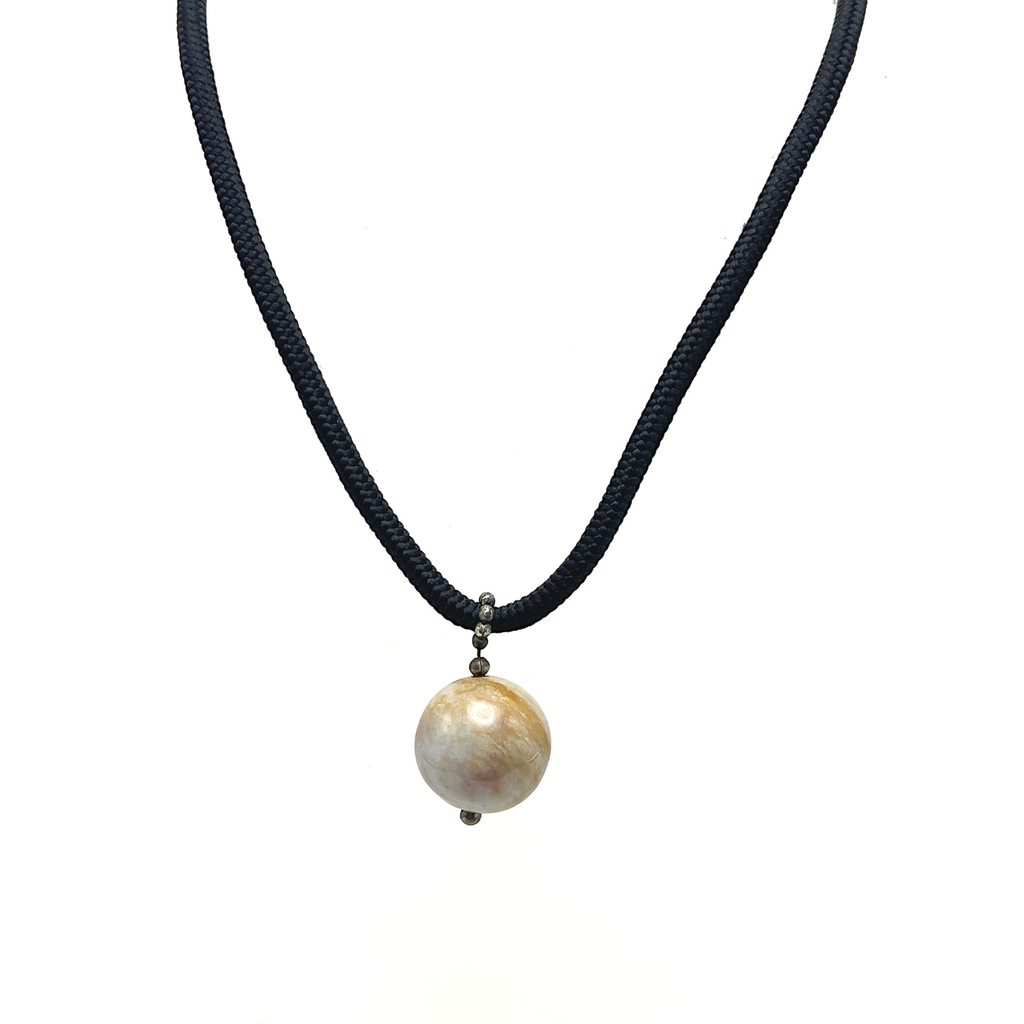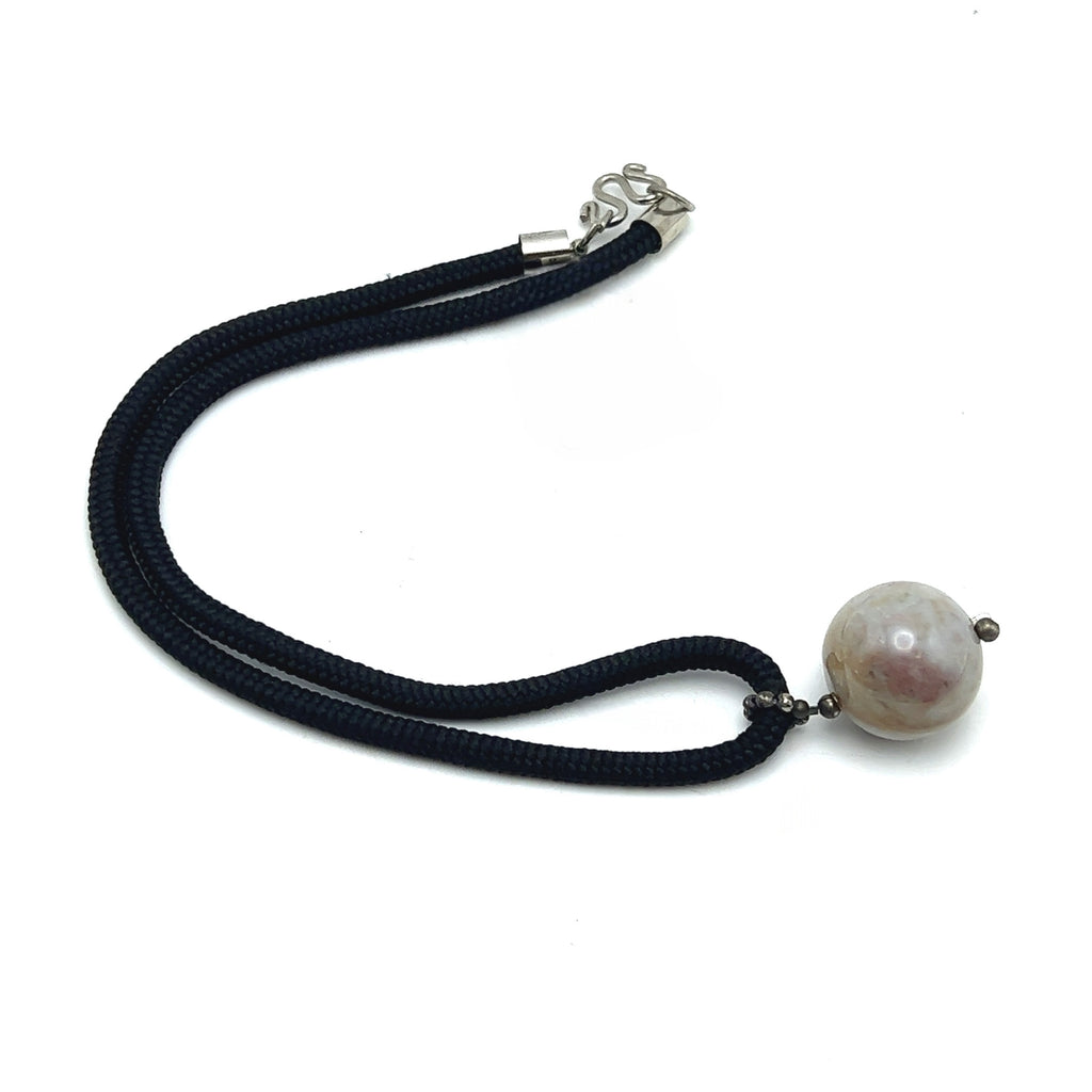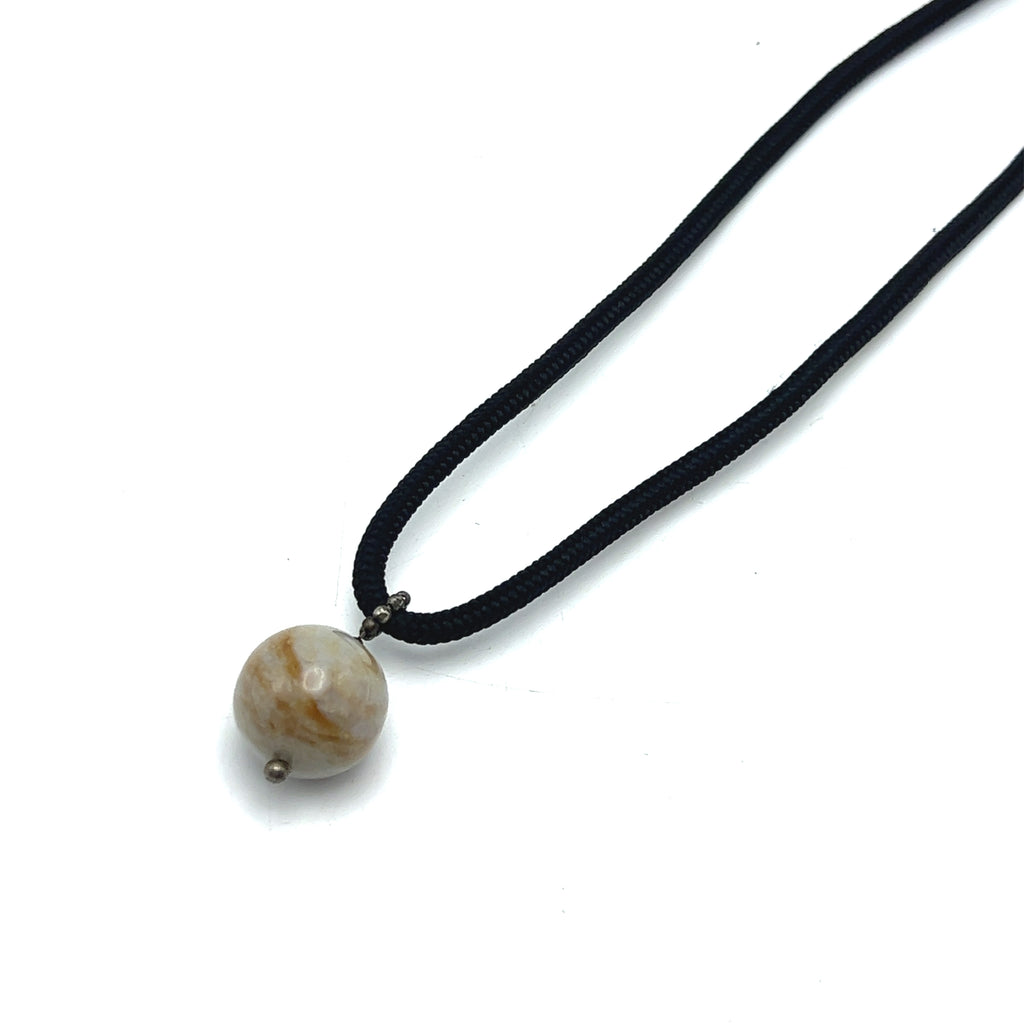 Natural Jasper Gemstone 20mm Ball with Dark Twisted Cord Pendant Necklace