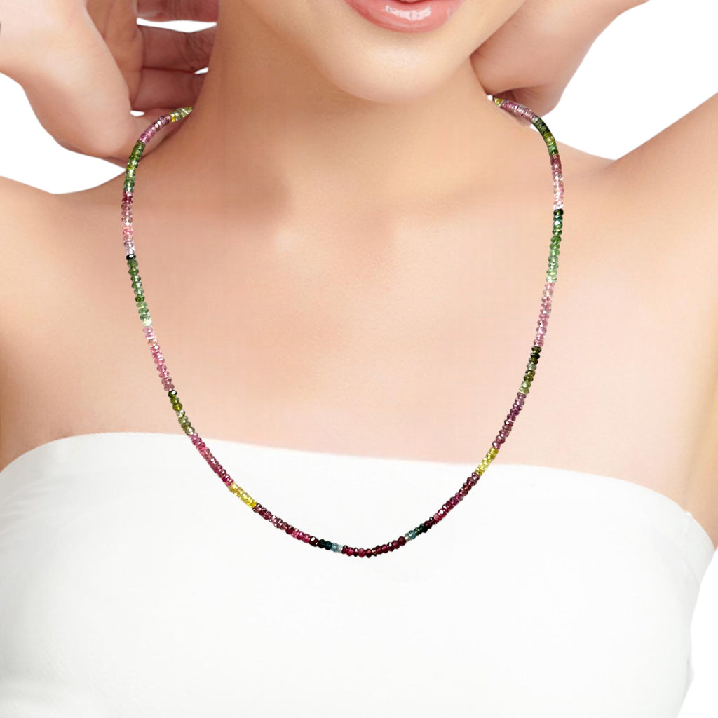 Natural Multi Tourmaline Rondelle Facet Cut Beads Gemstone Necklace