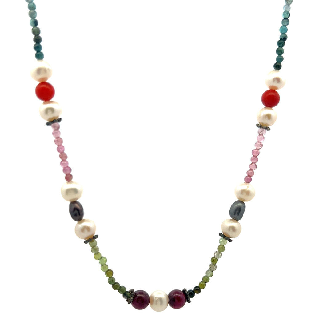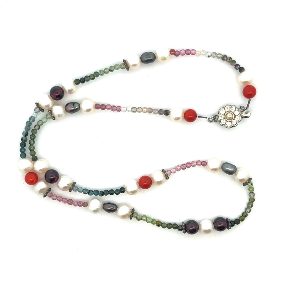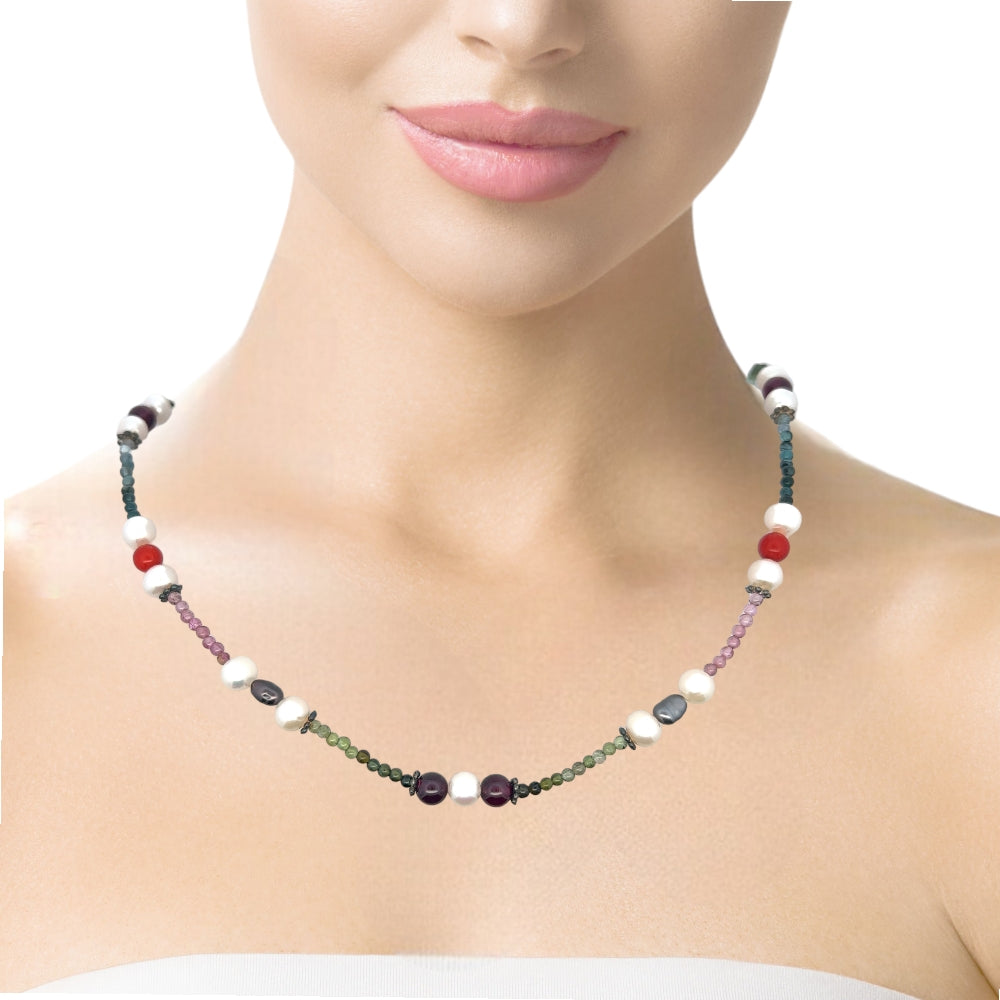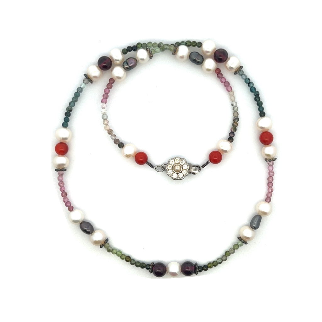 Natural Multi Tourmaline with Pearl Garnet Coral Color Gemstone Necklace