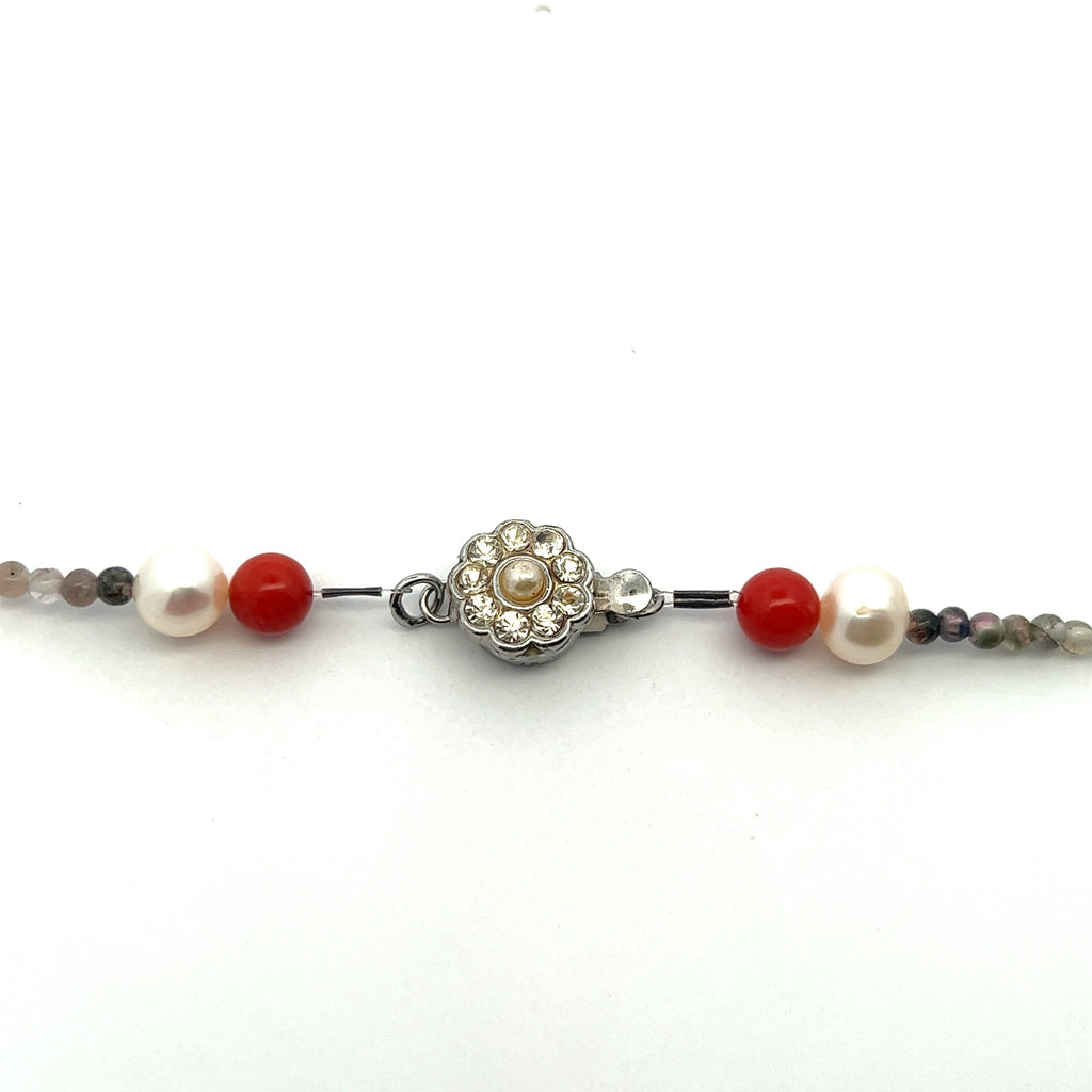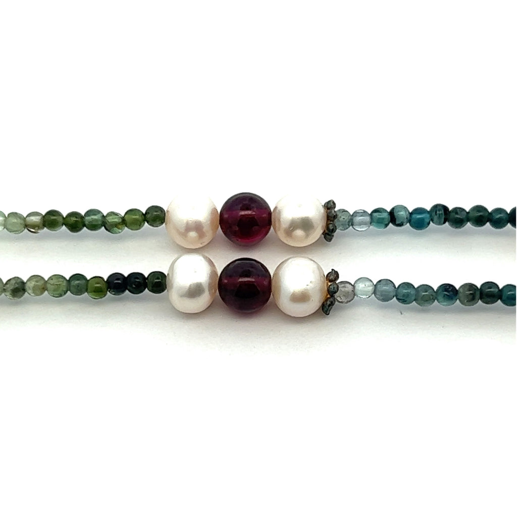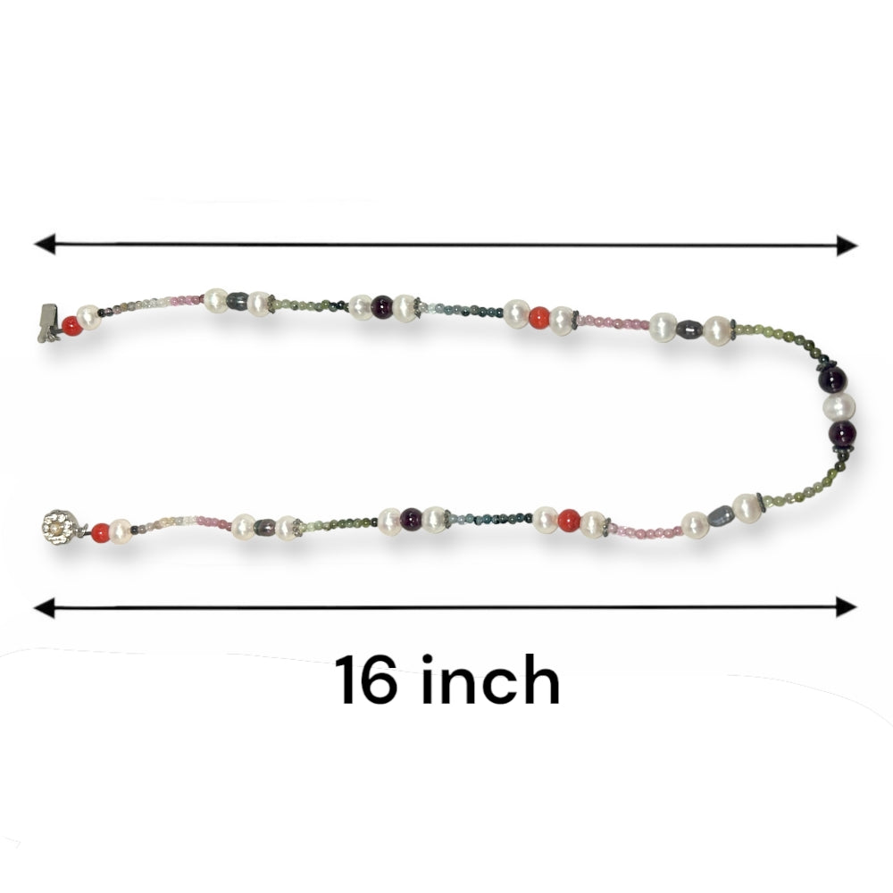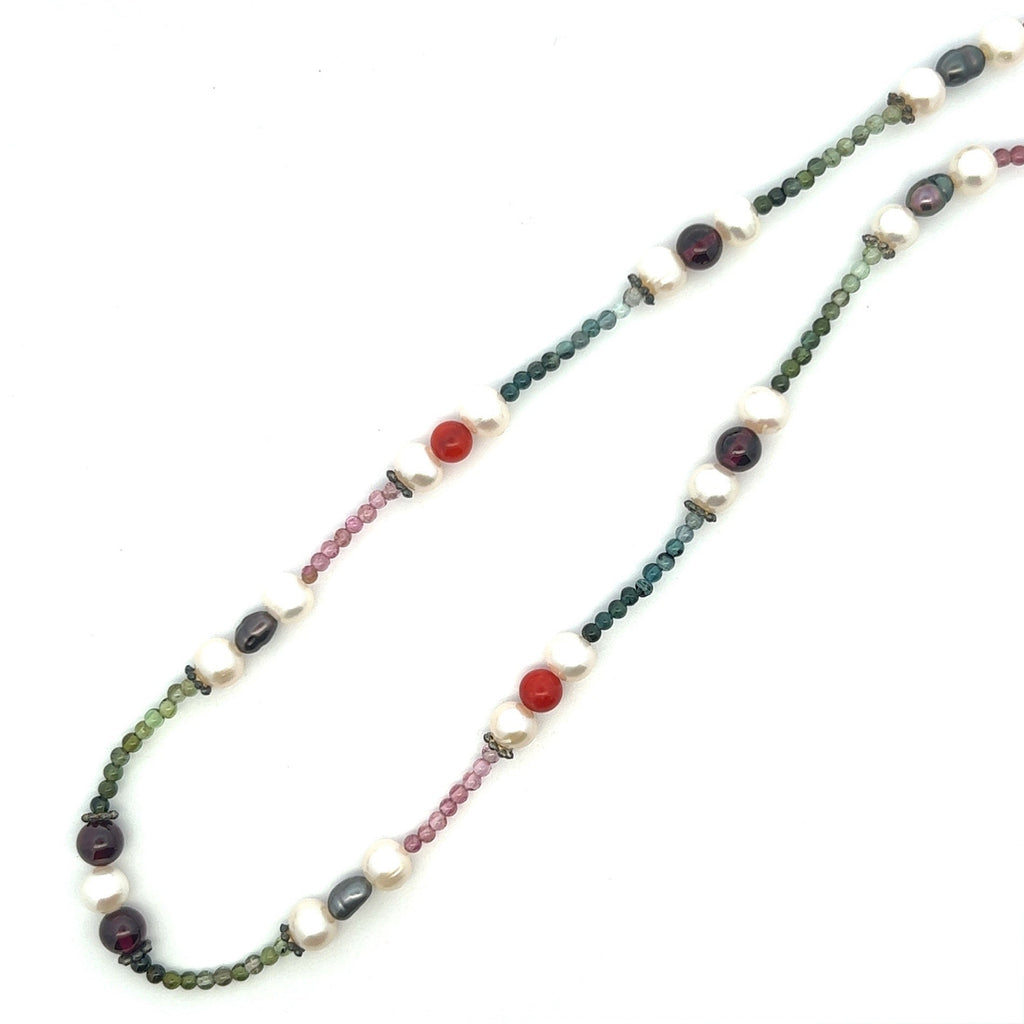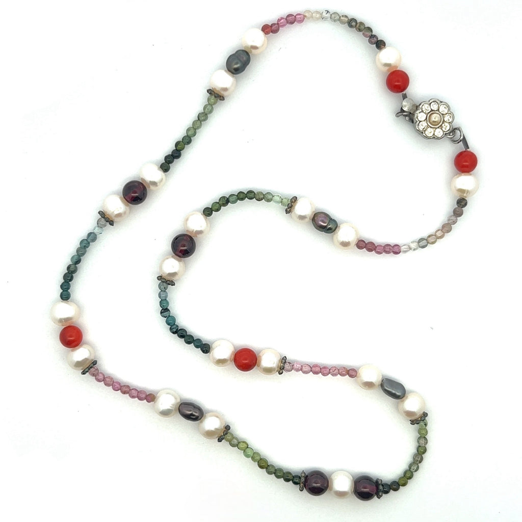 Natural Multi Tourmaline with Pearl Garnet Coral Color Gemstone Necklace