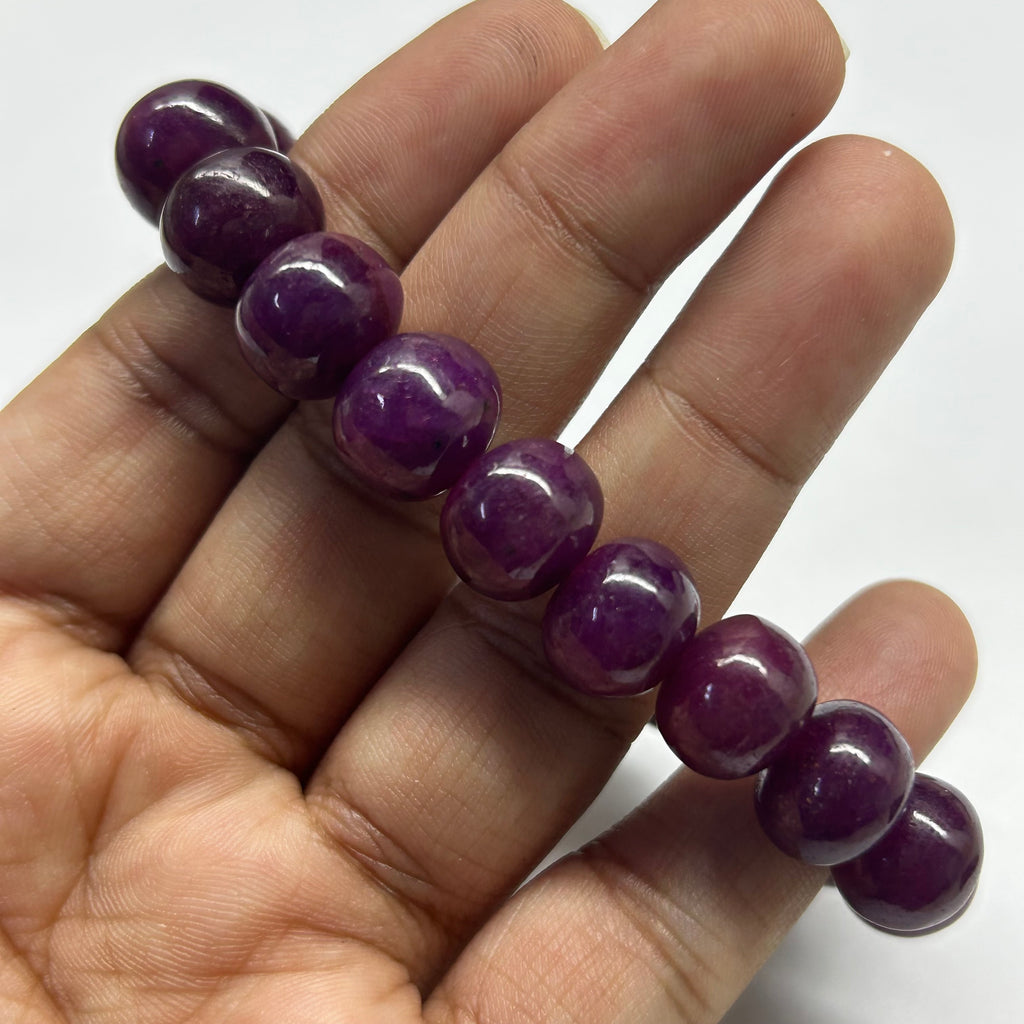 Natural Ruby Bracelet | Smooth 10-12mm Rondelle Beads 19 Pcs 235 Carats | Deep Crimson Red VVS Clarity | Gemstone Jewelry Gift