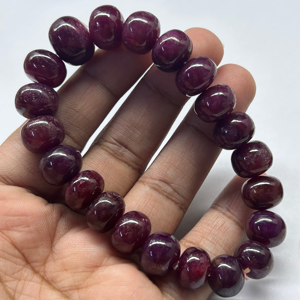 Natural Ruby Bracelet | Smooth 11–14mm Rondelle Beads 21 Pcs 280 Carats | Scarlet Red VVS Clarity | Classic Gemstone Jewelry