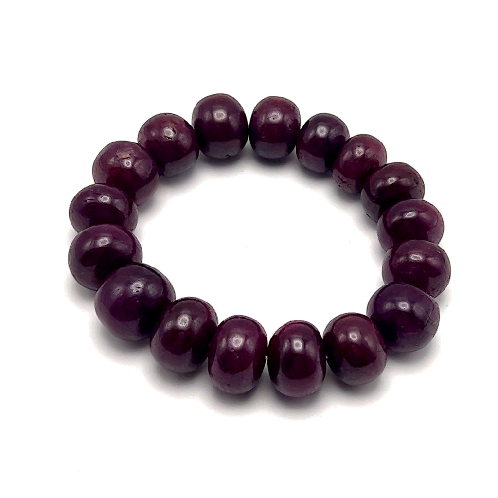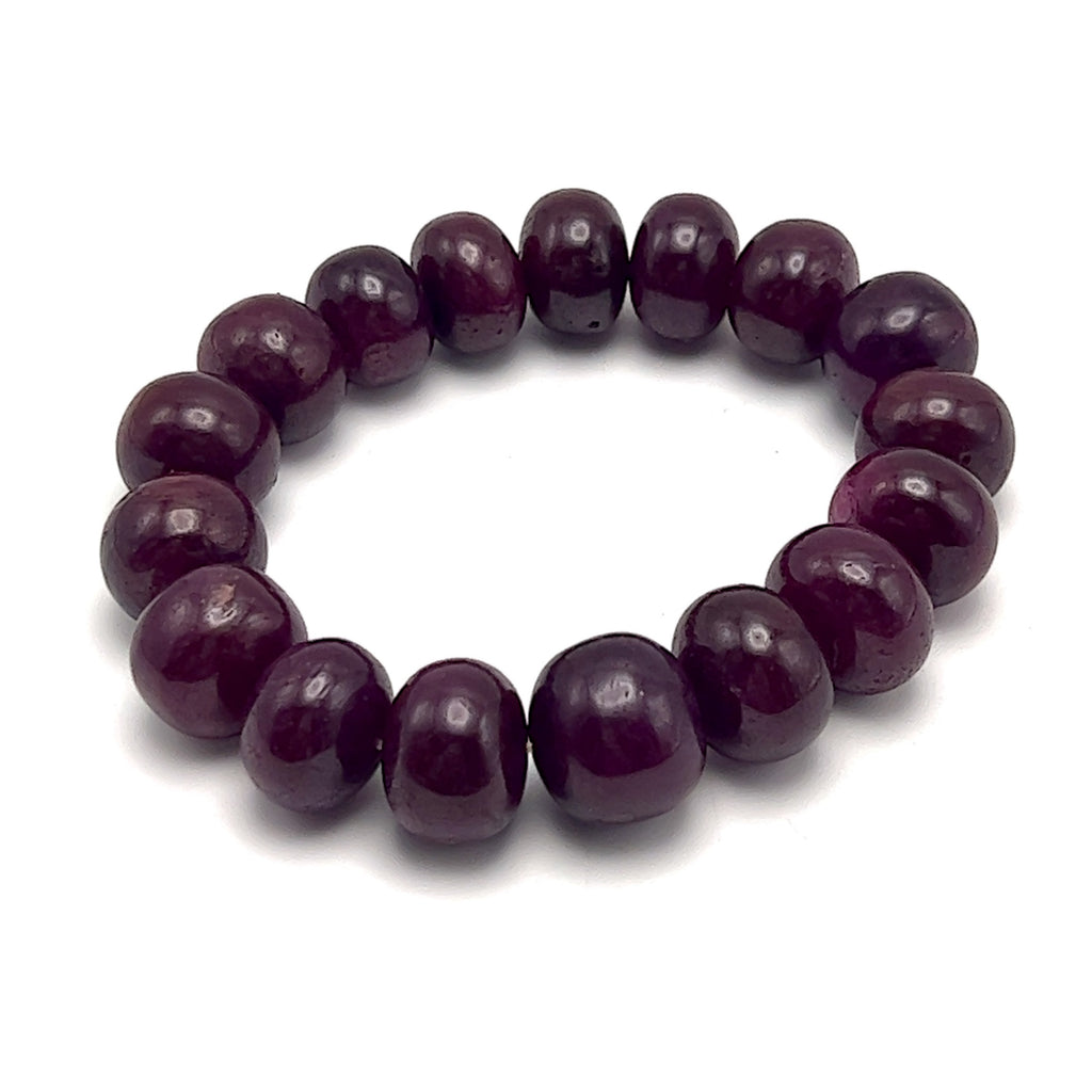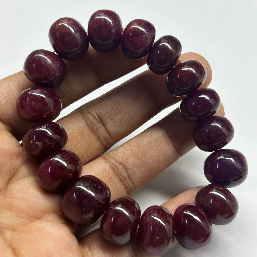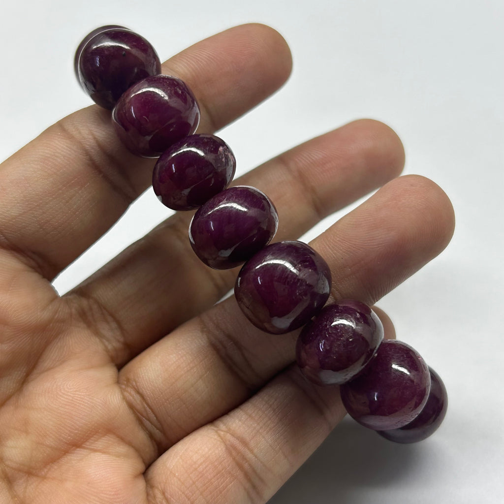 Natural Ruby Bracelet | Smooth 12-14mm Rondelle Beads 17 Pcs 345 Carats | Deep Scarlet Red VVS Clarity | Beaded Gemstone Jewelry