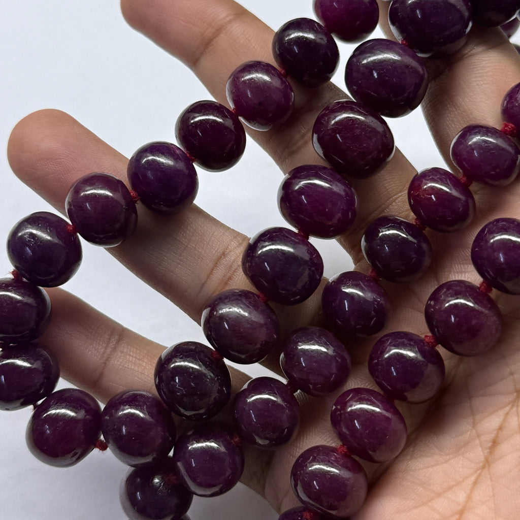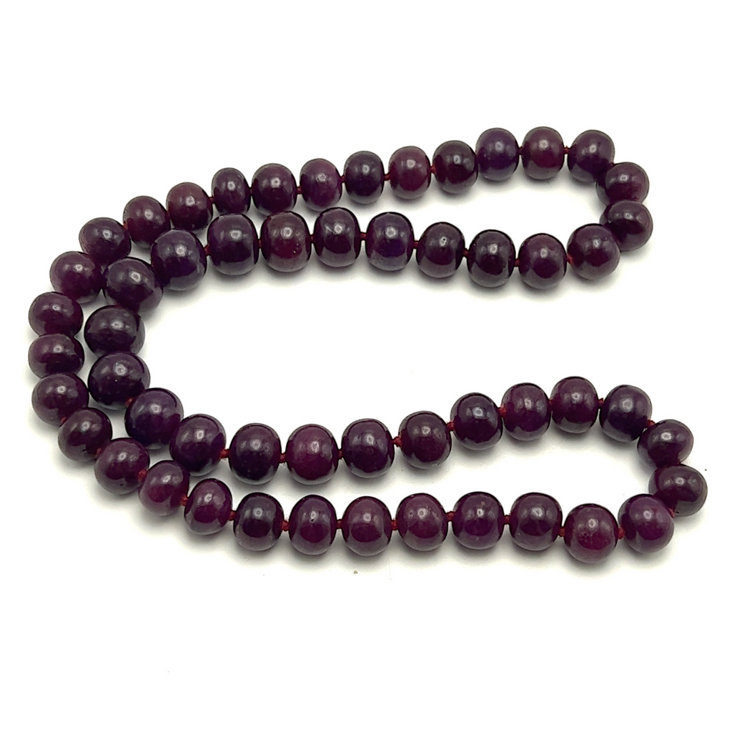 Celebrate timeless beauty and natural elegance with this Ruby gemstone beaded necklace. Crafted with genuine ruby stones, the necklace features smooth, polished beads in a rich crimson color that radiate warmth, passion, and sophistication. The classic design highlights the natural depth and luster of ruby, making it a versatile piece suitable for both everyday wear and special occasions. Known as the July birthstone, ruby is traditionally associated with love, confidence, and vitality, adding meaningful symbolism to its refined appearance. This necklace is perfect for wearing alone as a statement or layering with other gemstone jewelry for an elegant, personalized look.