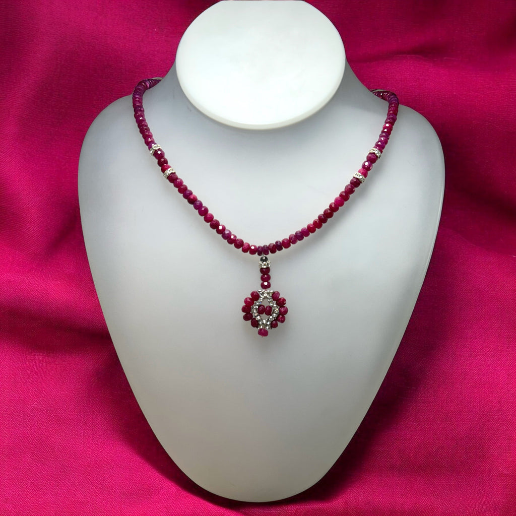 Natural Ruby Rondelle Facet Cut Beads Precious Birthstone Necklace