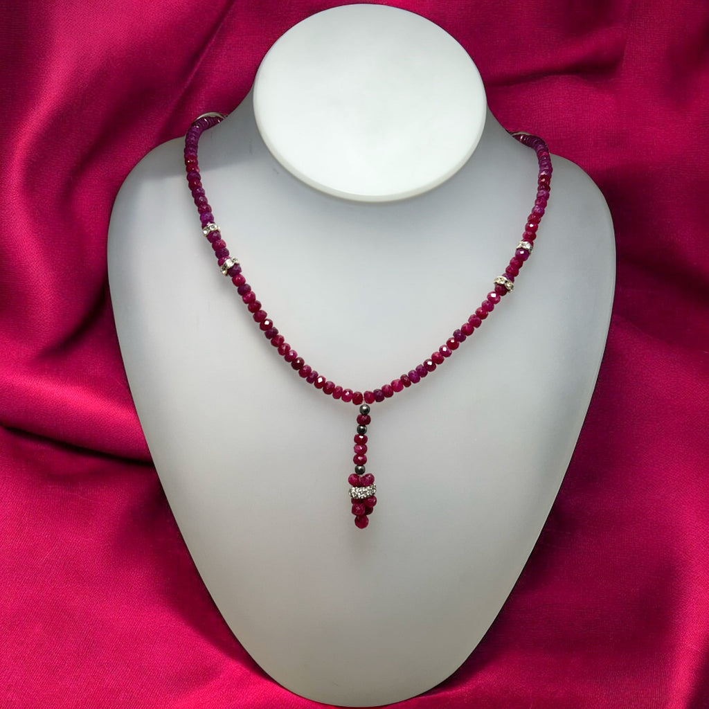 Natural Ruby Rondelle Facet Cut Precious Beads Necklace