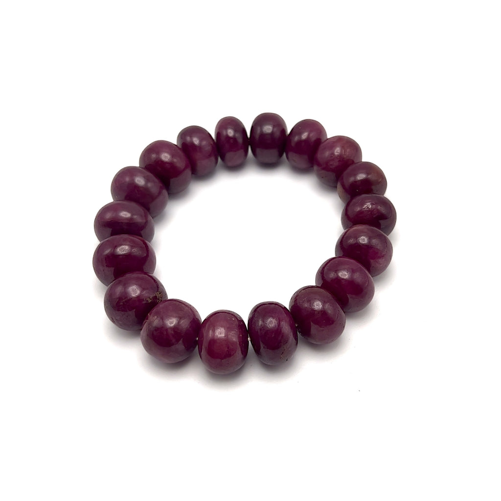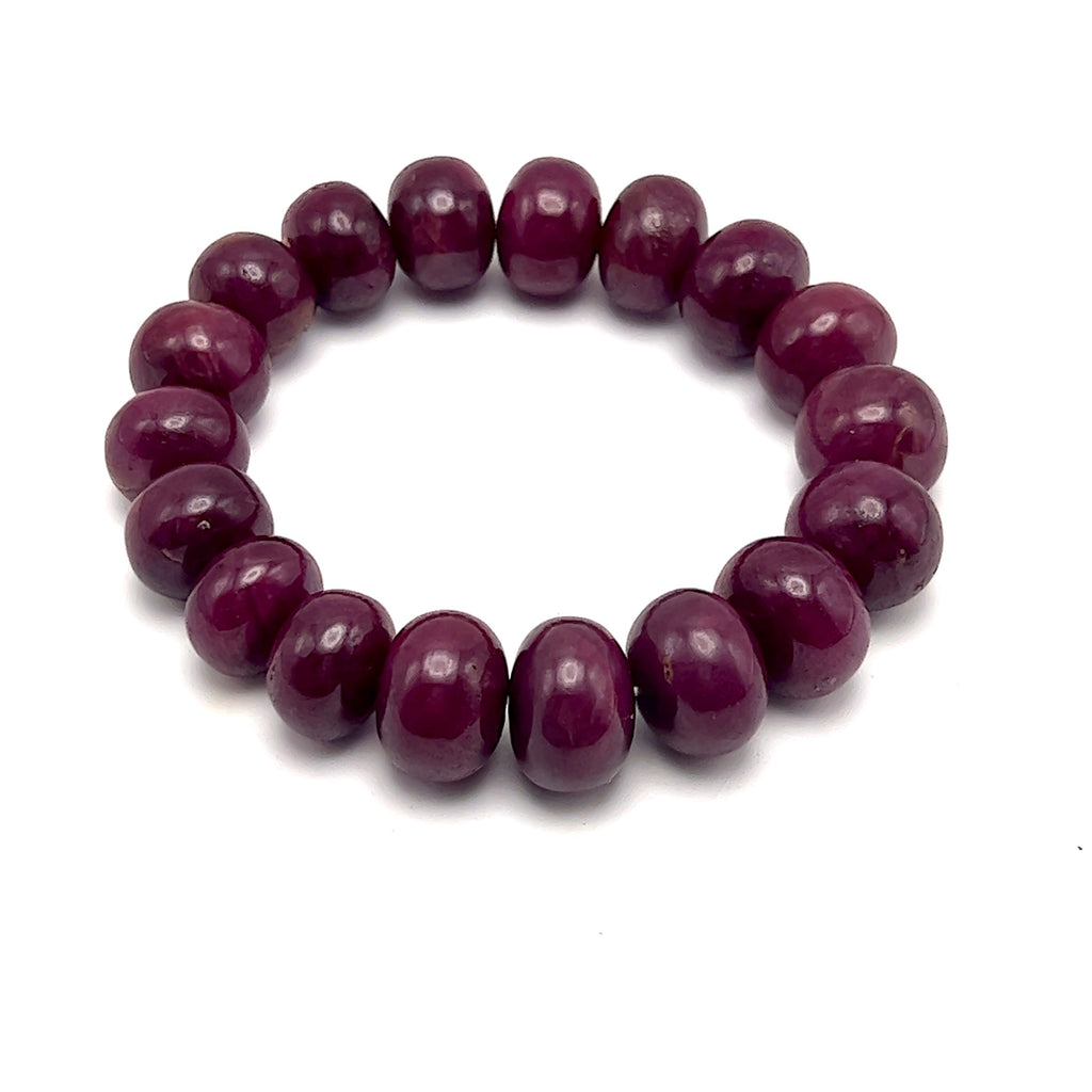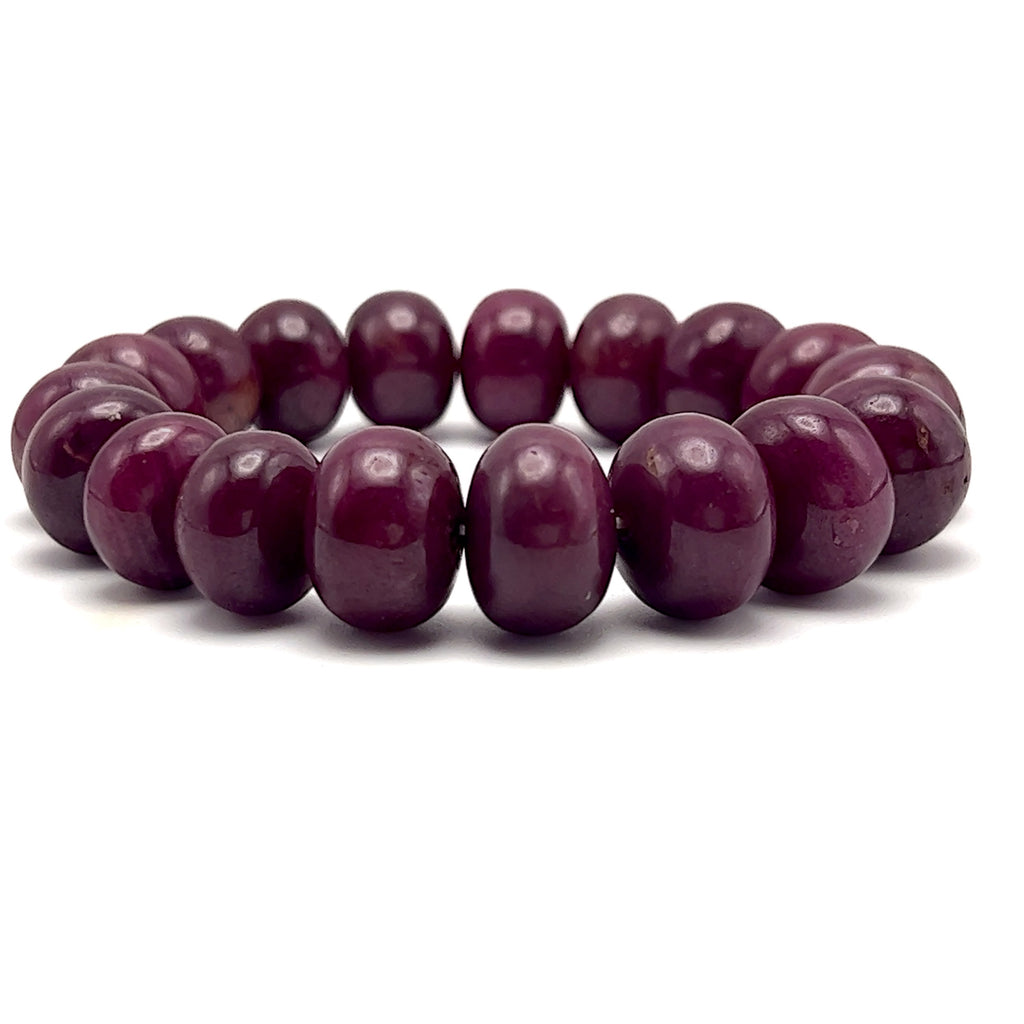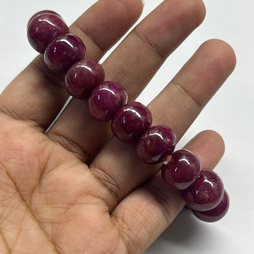 Natural Smooth Ruby Bracelet | 12–15mm Rondelle Beads 18 Pcs 374 Carats | Burgundy Red VVS Clarity | Timeless Gemstone Jewelry