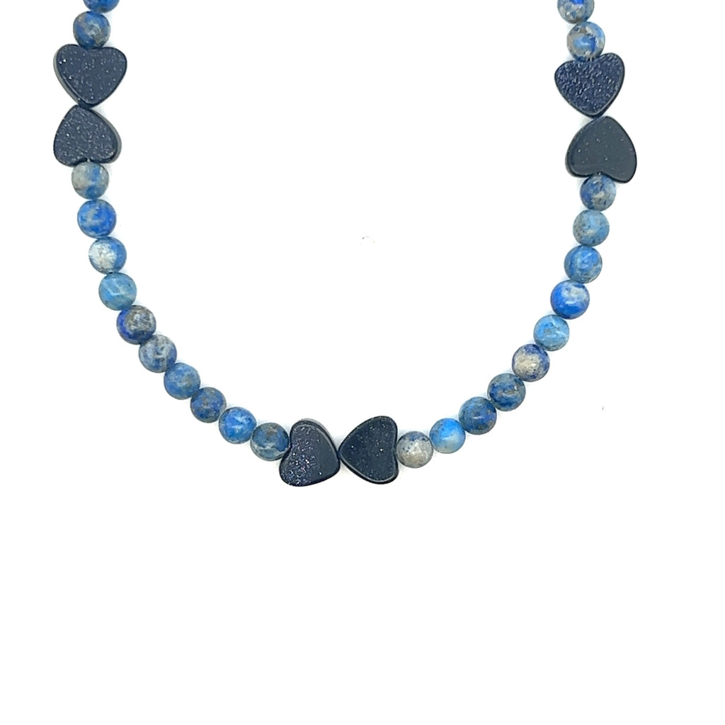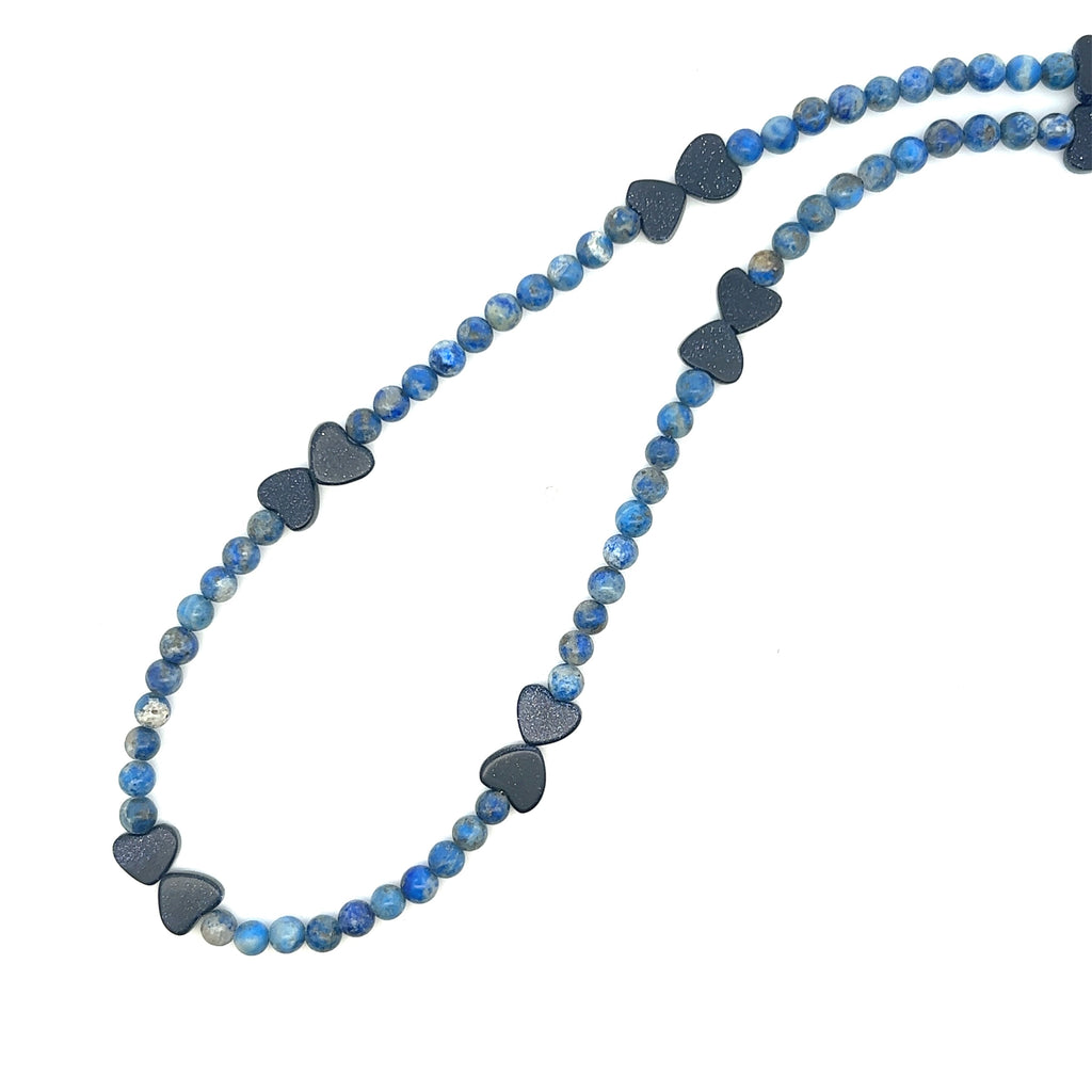 Natural Sodalite Ball with Silver Sunstone Heart Gemstone Necklace