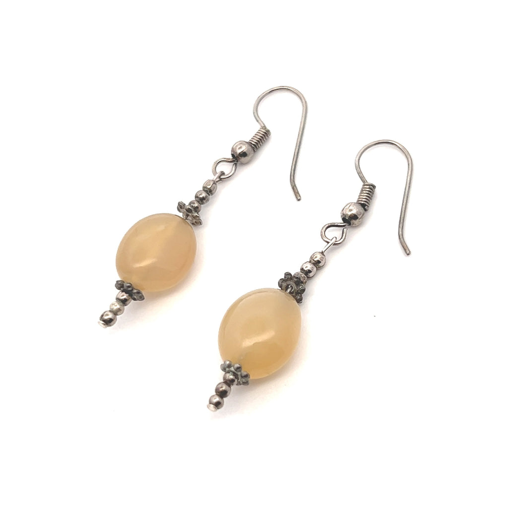 Yellow Chalcedony 12x7mm Tumble Plain Dangle Gemstone Earrings