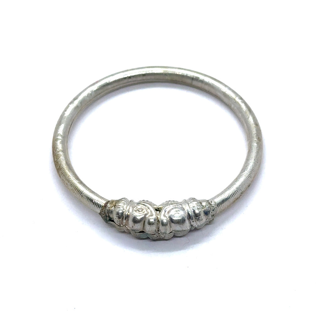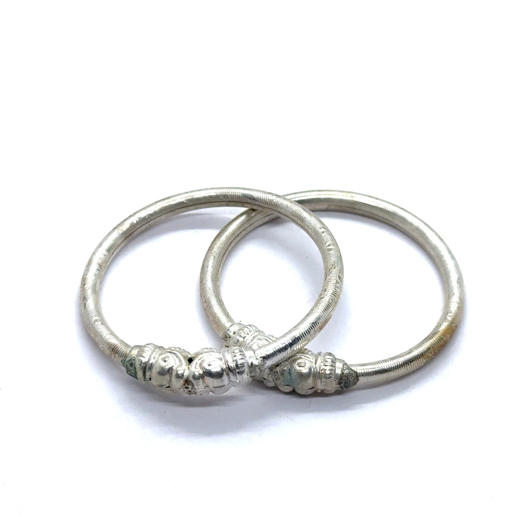This beautifully engraved kada set combines traditional design with a clean, elegant silver texture. The ornate detailing at the joint adds a handcrafted charm, making it suitable for both ceremonial and everyday use.