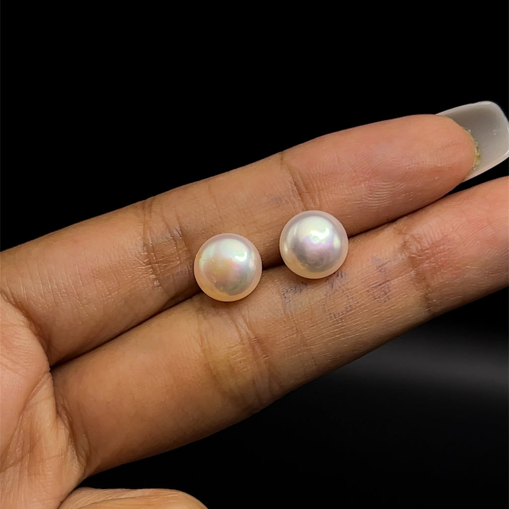 Pearl Freshwater Button Stud Earrings Pink Color 9mm Excellent Luster Classic Pearl Jewelry for Love Care and Birthday Gifting