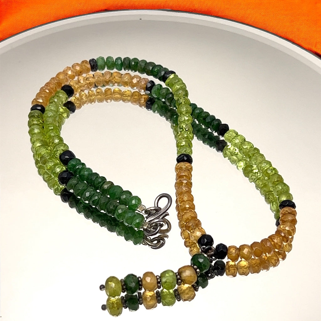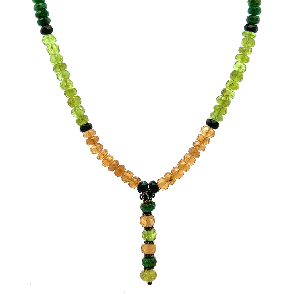 Peridot Natural, Citrine, Black Tourmaline, and Tsavorite Gemstone Necklace