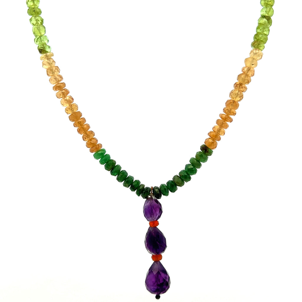 Peridot Natural, Citrine, Spessartite Garnet, Tsavorite, and Amethyst Necklace