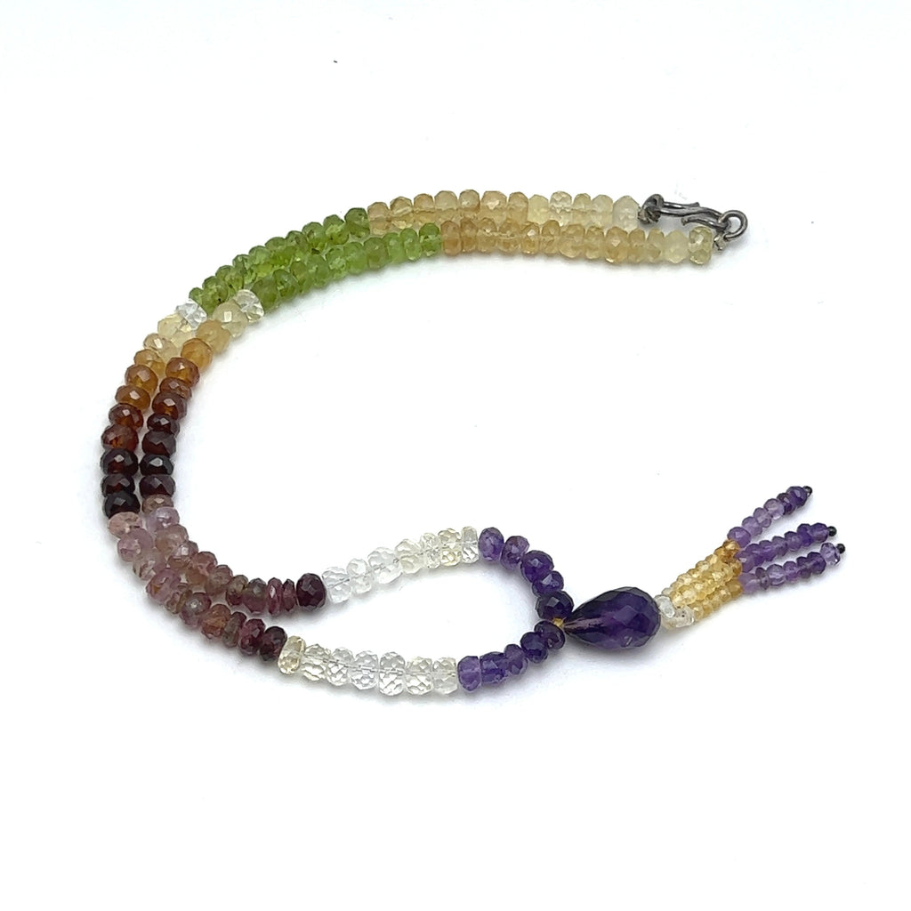 Peridot Natural, Citrine, Spessartite, Pink Tourmaline, and Amethyst Necklace