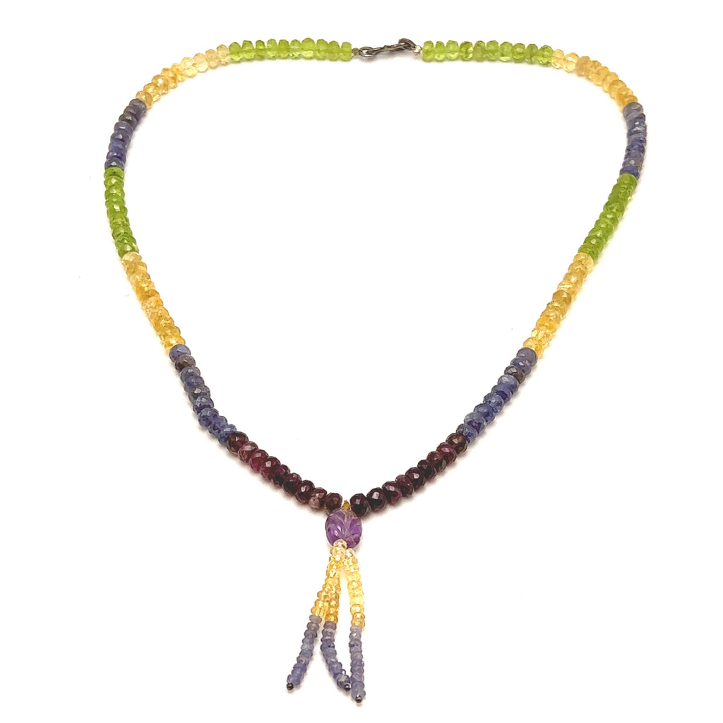Peridot Natural, Citrine, Tanzanite, Garnet, and Amethyst Necklace