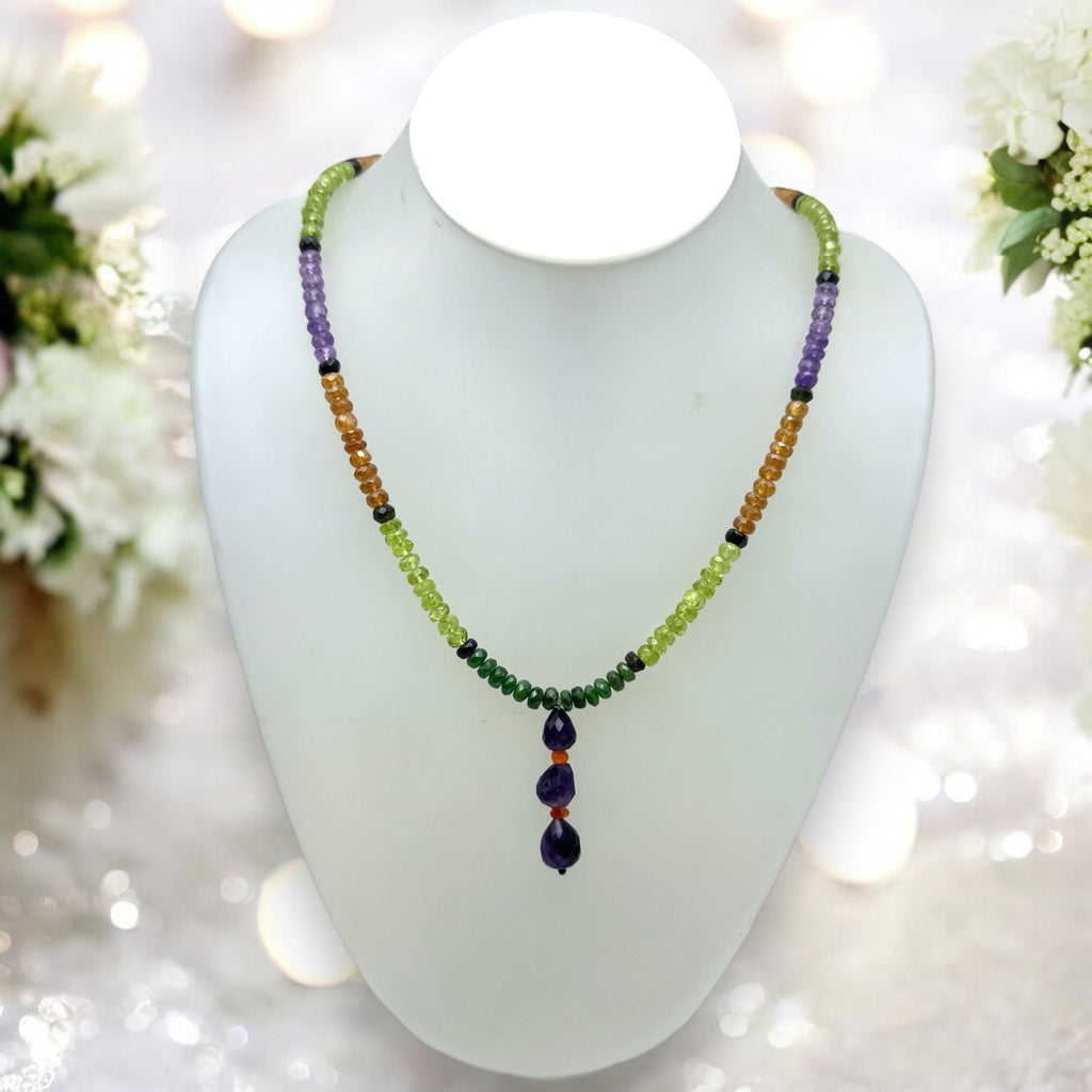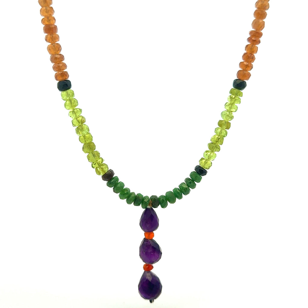 Peridot Natural, Tsavorite, Amethyst, and Citrine Necklace