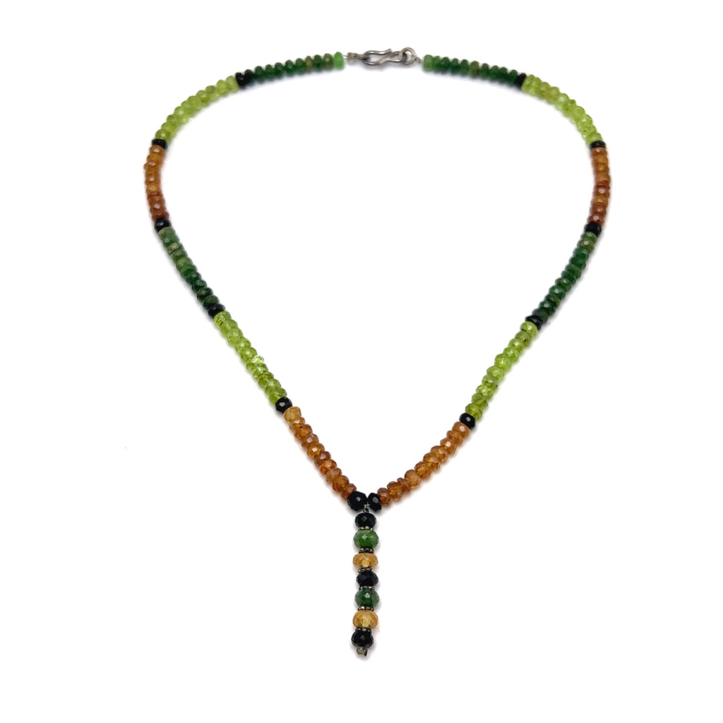 Peridot Natural, Tsavorite, Black Tourmaline, and Spessartite Garnet Necklace