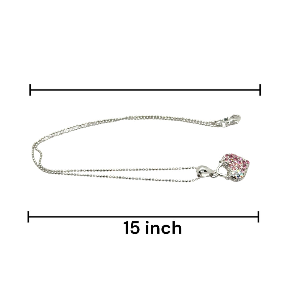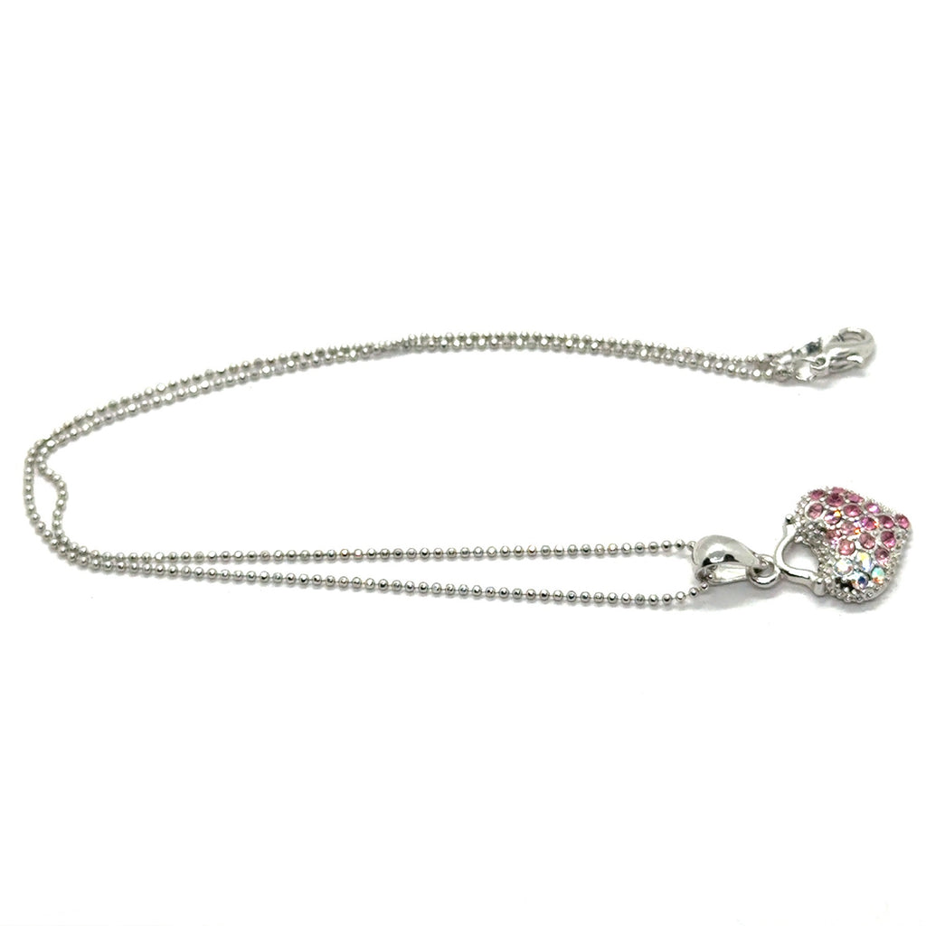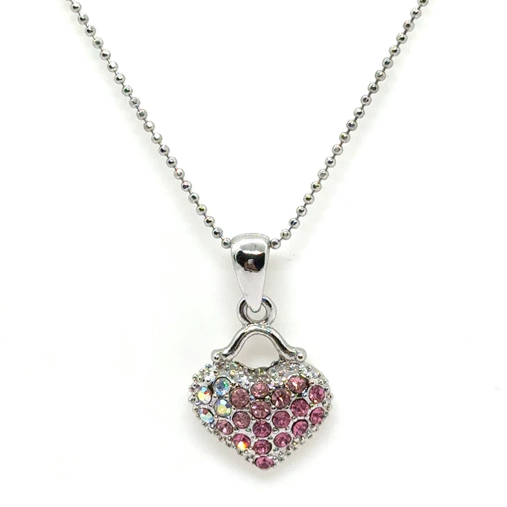 • Design: Heart-shaped handbag-style pendant encrusted with rhinestones