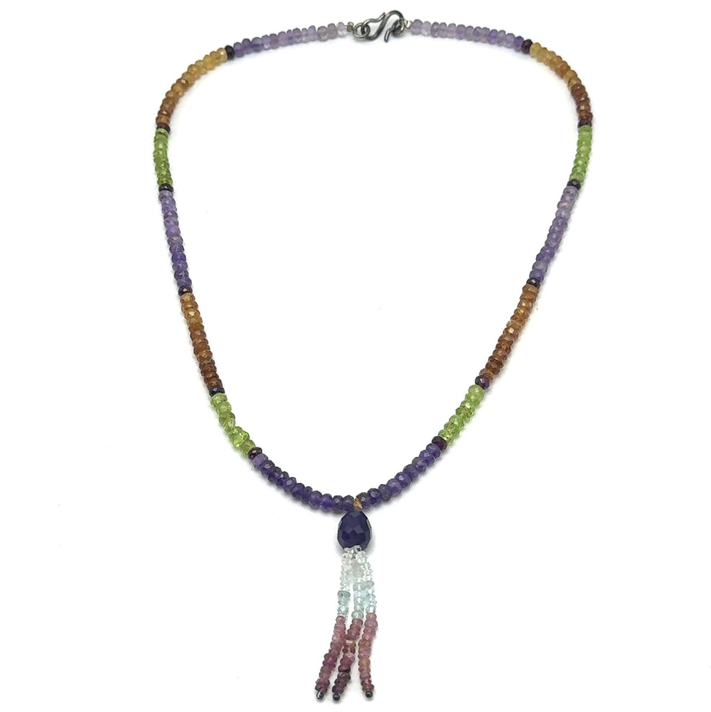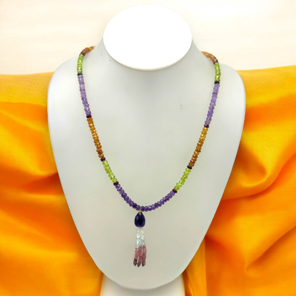 Pink Tourmaline Natural, Spessartite, Amethyst, Peridot, Aqua, and Citrine Necklace